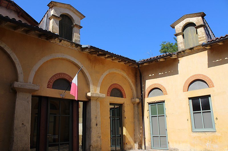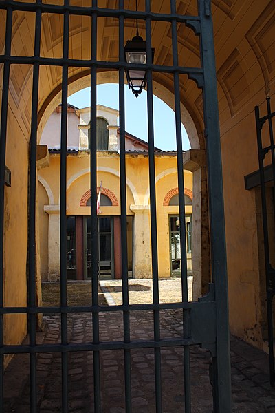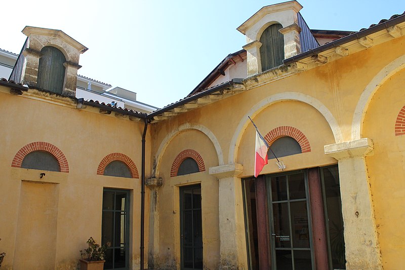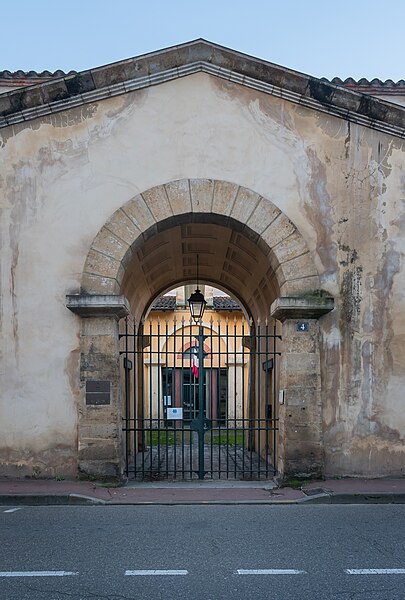 L'ancienne caserne de gendarmerie de Mont-de-Marsan se situe au 6 rue du Huit-Mai-1945, bordée au nord par la rue Maubec et au sud par la rue Armand-Dulamon ; ses anciennes écuries se trouvent au 4 rue du Huit-Mai-1945, de l'autre côté de la rue Maubec. Les écuries sont inscrites aux monuments historiques par arrêté du 21 décembre 1984. Conçu par l'ingénieur des Ponts-et-Chaussées David-François Panay, l'ensemble néo-classique a été édifié entre 1807 et 1816 sur l'emplacement de l'ancien couvent des Ursulines ; auparavant, la gendarmerie était installée sur le site de l'ancien couvent des Clarisses. L'édifice jouxtait alors la maison d'arrêt et faisait face au palais de justice, comme le montre le cadastre napoléonien de 1811. L'entrée, sur un plan à peu près carré, se caractérise par une porte encadrée de pilastres massifs et de corniches très saillantes, surmontée d'un arc en plein cintre dont les claveaux sont soulignés par des lignes de refends. Le côté sud est rythmé par des baies de formes variées coiffées de briques et la cour intérieure prolonge visuellement ces façades. Un orage de grêle d'une intensité exceptionnelle, survenu le 19 août 1971, causa des avaries à la gendarmerie et à d'autres établissements publics. La caserne a été transférée en 1977 au 50 rue Pierre-Benoît, dans le quartier de Saint-Jean-d'Août. Le bâtiment principal, racheté par la ville, a été transformé en maison des associations René-Lucbernet en 1995. Les anciennes écuries appartiennent aujourd'hui au conseil départemental des Landes et accueillent le service départemental de l'architecture. Les vues disponibles présentent les carrefours de la rue du 8-Mai-1944 avec les rues Armand-Dulamon et Maubec, une perspective générale entre la rue Maubec et le pont du Lycée, la porte d'entrée et la cour intérieure.