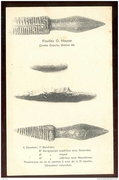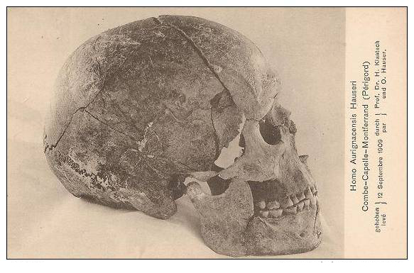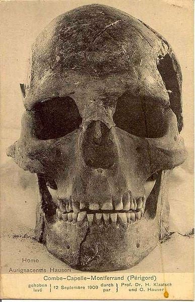 L’Homme de Combe‑Capelle, squelette complet découvert par Otto Hauser en 1909, fut vendu en 1910 au Musée d’ethnologie de Berlin et fit ensuite partie des collections du Musée de Préhistoire et de Protohistoire de Berlin. Après la Seconde Guerre mondiale une partie des collections fut déplacée et un crâne fut entreposé à l’abri ; des transferts d’objets eurent lieu entre la Russie et l’Allemagne orientale, et le crâne fut réidentifié dans les collections en 2001 puis exposé au musée de Préhistoire et de Protohistoire avant son transfert en 2009 au Neues Museum de Berlin. Longtemps considéré comme paléolithique et daté d’environ 30 000 ans, l’individu a vu son âge réévalué en 2011 : une analyse du collagène d’une dent a donné un âge de 8 550 ans avant le présent, soit un âge calibré d’environ 7 600–7 700 ans avant notre ère, correspondant au Mésolithique.