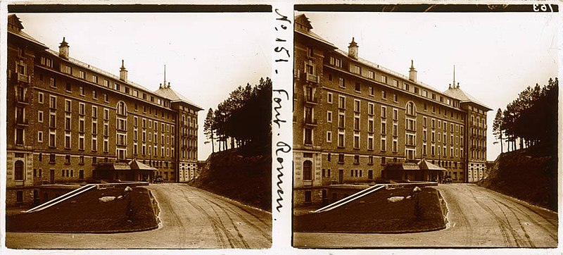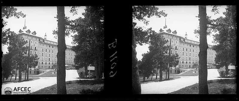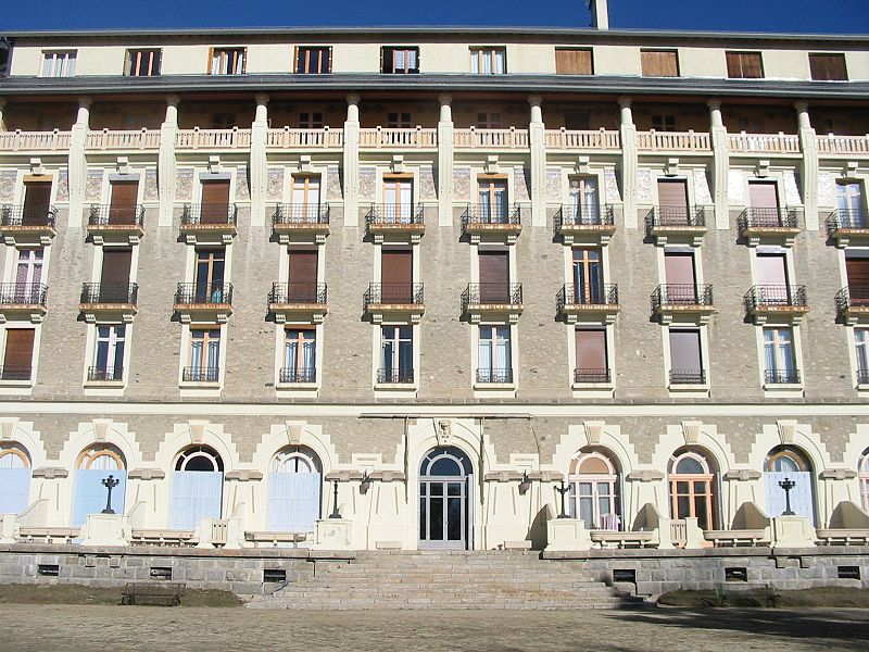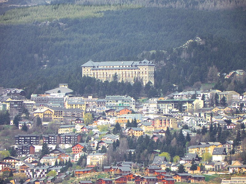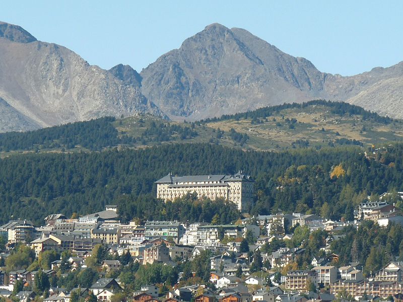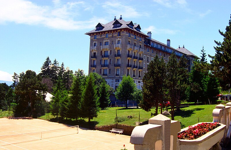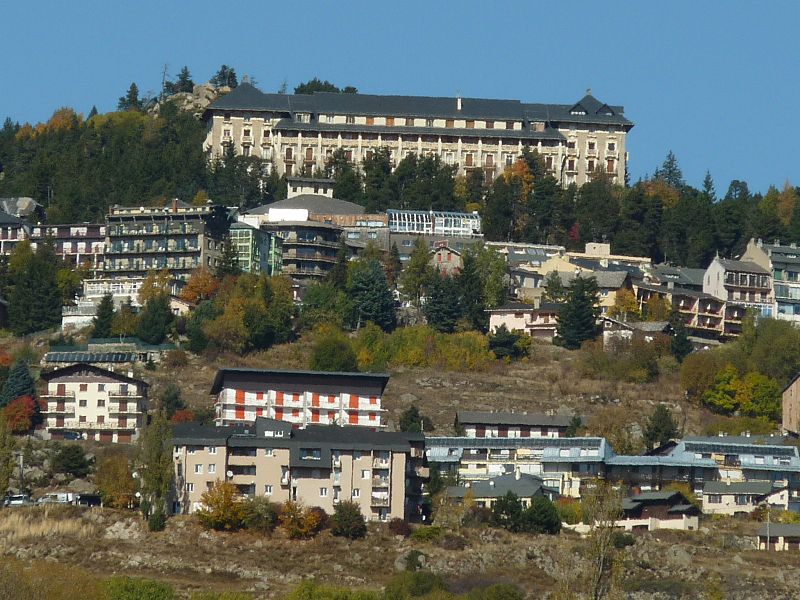 Le Grand-Hôtel de Font-Romeu a été conçu en 1910 par Albert Lafargue, Perpignanais et professeur au lycée Condorcet à Paris. Destiné à offrir deux cents chambres, le chantier s'interrompt faute de fonds puis est repris en 1911 par l'architecte Henri Martin pour la Société des chemins de fer et hôtels de Montagne aux Pyrénées, filiale de la Compagnie des chemins de fer du Midi dirigée par Jean-Raoul Paul. Construit en pierre de taille, l'hôtel est inauguré en juin 1914. Il comportait des salles de jeux, un casino, des installations sportives et un restaurant. La façade porte un décor en céramique et la terrasse est bordée de réverbères en fonte. L'activité hôtelière reprend avec l'essor de la station à partir de 1925. Depuis les années 1970, le bâtiment a été transformé en appartements individuels. Ses façades, sa toiture et sa cage d'escalier, ainsi que leurs éléments décoratifs, sont inscrits aux monuments historiques.