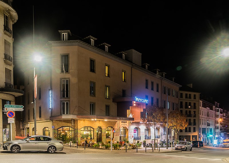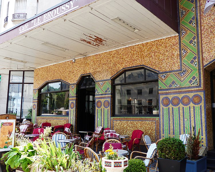 Construit en 1891, le Grand Hôtel Le Broussy et le Grand Café Riche ont fait l'objet d'une importante campagne de rénovation entre 1928 et 1930 confiée par Paul Broussy à son ami, l'architecte André Boyer (1882-1953), auteur du musée Denys Puech. Les travaux comprirent la création d'une terrasse extérieure couverte par une imposante marquise filante, la reprise de la façade principale, la transformation du café, de l'entrée et du salon de l'hôtel, ainsi que probablement des chambres aux étages. Les sols furent habillés de mosaïques aux décors Art déco et, selon la tradition orale, la mosaïque de façade aurait été réalisée par l'entreprise de Marius et Georges Bellaclat. Des éléments de ferronnerie d'art, signés sur l'escalier par Louis Lacout, furent exécutés à cette occasion, avec, d'après un témoignage oral, la participation de l'entreprise Martel. Le peintre orientaliste Maurice Bompard intervint pour la décoration du salon et réalisa également divers tableaux pour la salle à manger. La grande salle du café a conservé l'essentiel de son décor des années 1930 ainsi que la majeure partie de son mobilier, fabriqué par le ruthénois Louis Vigouroux. L'immeuble fut surélevé et modernisé dans les années 1970; il fut ensuite divisé dans les années 1980, la partie hôtel étant cédée tandis que les chambres situées au-dessus du café furent vendues à l'Association pour les pupilles de l'enseignement public. À cette époque, un accès au sous-sol depuis le café fut aménagé, entraînant la suppression de sièges et de luminaires. Après une période d'abandon, le groupe Ruban bleu racheta l'ensemble en 2007 et entreprit une rénovation et une restructuration qui ont respecté les éléments patrimoniaux. L'établissement a rouvert en 2008 sous l'enseigne Hôtel Mercure. Le bâtiment est labellisé « Patrimoine du XXe siècle » (dernière vérification 22/02/2016).