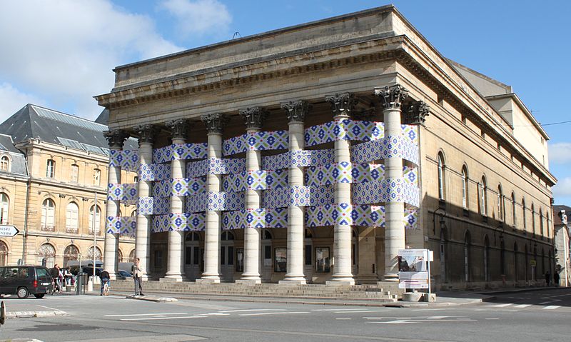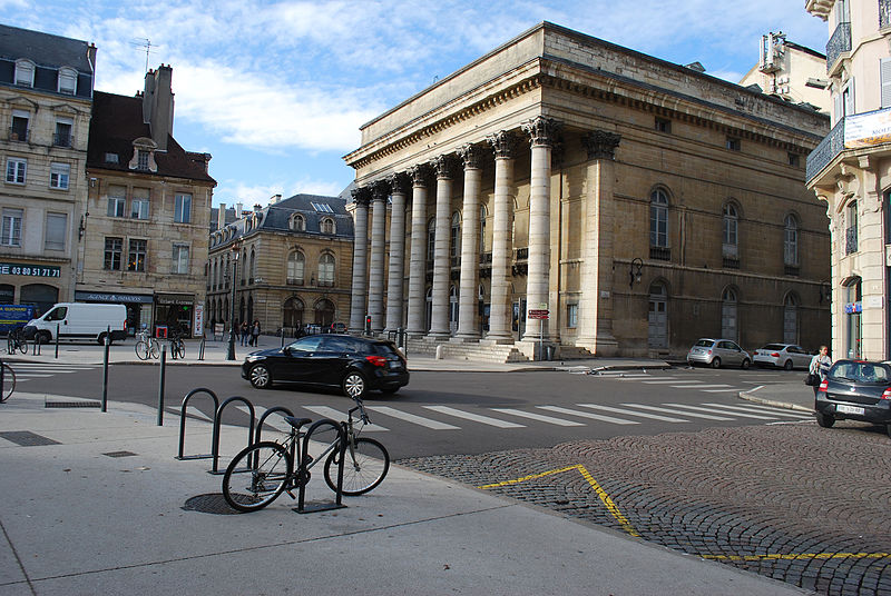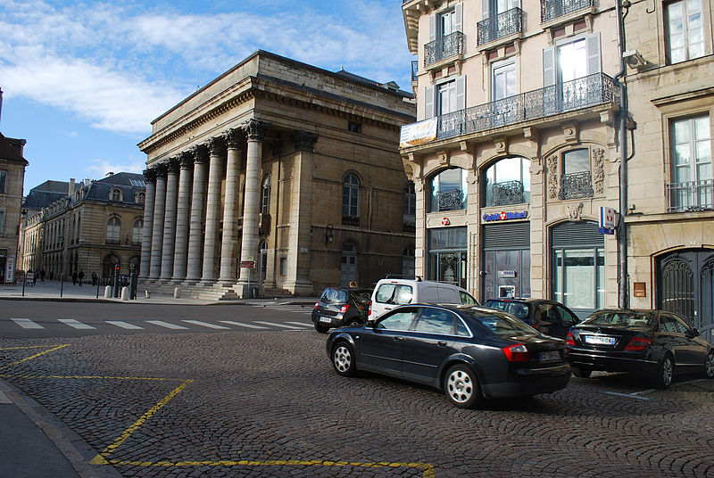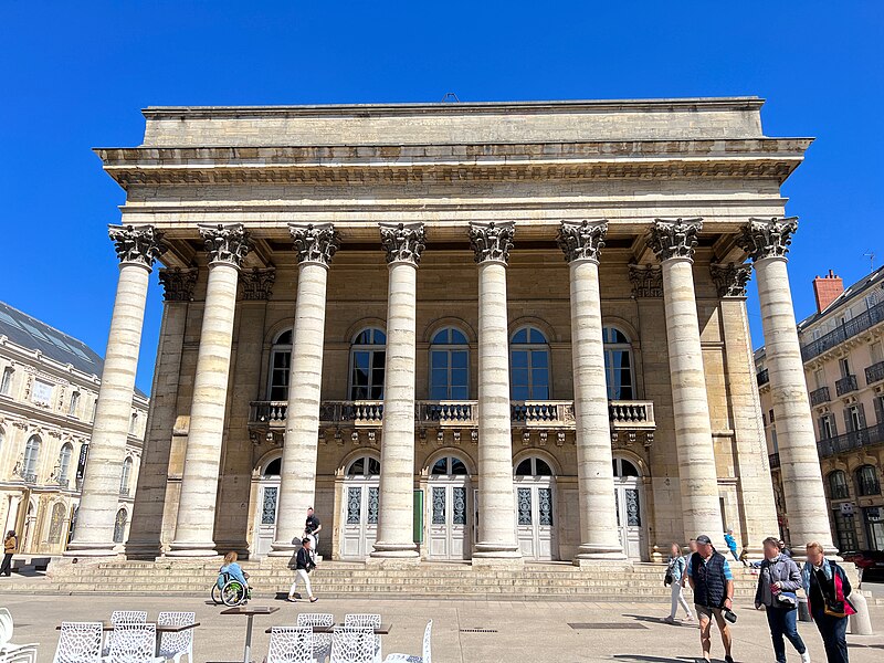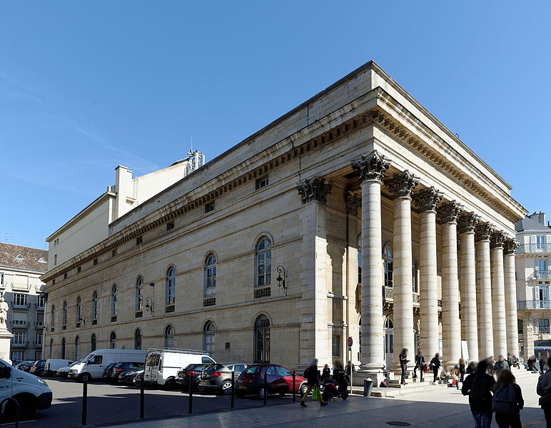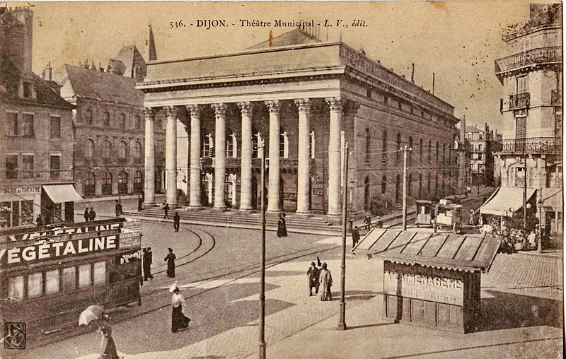 Le Grand Théâtre de Dijon occupe l'emplacement de l'ancien couvent des Jacobins concédé à la ville par le roi le 20 mai 1786. L'architecte Jacques Cellerier, originaire de Dijon, présenta un projet qui resta sans suite en raison de l'opposition de l'évêque puis de la Révolution. Au début du XIXe siècle la municipalité choisit la place de la Sainte-Chapelle pour installer le théâtre et Cellerier rédigea un nouveau projet pour une salle d'environ 1 256 places, à plan en U, avec loges d'avant-scène, deux balcons et un poulailler. Cette proposition fut adoptée le 20 septembre 1809, les travaux furent adjugés le 10 août à Louis Alexandre François Reux et la première pierre posée le 2 décembre 1810. Des imprécisions de plans et des retards de paiement conduisirent Reux à arrêter le chantier en 1811 ; la résiliation de son adjudication intervint en février 1812 et les travaux restèrent interrompus plusieurs années. Après le décès de Cellerier en 1814, Simon Vallot fut désigné pour le remplacer ; en 1821 il modifica la forme de la salle afin d'améliorer la visibilité depuis les loges et ajouta escaliers et sorties. L'adjudication des travaux fut homologuée fin janvier 1823, la maçonnerie confiée aux entreprises Papinot Frères et Gaudriot, et la sculpture, la décoration intérieure, le mobilier et les décors de scène attribués respectivement à Jean‑Baptiste Plantar, aux frères Moench, à Jean‑Jacques Werner et à Ciceri avec son associé Lèbe‑Gigun. La réception des travaux a lieu le 17 septembre 1828 et l'inauguration le 4 novembre de la même année. Des travaux pour la sécurité en cas d'incendie (puits, pompe et réservoirs) furent réalisés en 1832 ; l'éclairage partiel au gaz fut adopté en 1839 puis étendu en 1848 à la façade, aux salles publiques, aux bureaux et au corps de garde. En 1846 un magasin à décors fut aménagé dans l'ancienne église Saint‑Étienne, devenue halle au blé. En 1855 les architectes Jean‑Philippe Suisse et Jean Alphée Cyprien Scheffer remanièrent les galeries et les loges, refirent l'ornementation et firent créer une coupole « mi‑plate » décorée d'un trompe‑l'œil par Charles Cambon. Par la suite l'édifice fit l'objet d'adaptations liées à la sécurité, au progrès et au confort : pose de paratonnerres en 1867, électrification en 1900, modifications en 1934 par Georges Parisot (reconstruction en béton armé du premier balcon et de la fosse d'orchestre) et réaménagement de la scène en 1953‑1954 par Georges Gendrot, avec surélévation de la partie nord et remplacement des tuiles par des ardoises. Une rénovation complète, hors scène, conduite par Jean‑François Devalière et Michel Grangy eut lieu en 1970 : climatisation, suppression partielle de loges au premier balcon, renouvellement de la décoration, des sièges et des luminaires ; le théâtre rouvrit le 3 novembre 1970 avec 1 006 places. Les façades et toitures ont été protégées au titre des monuments historiques en 1975. Le théâtre s'est rapproché en 2002 de l'Auditorium pour former le Duo Dijon, devenu Opéra de Dijon en 2008 et labellisé Théâtre lyrique d'intérêt national en 2017. Des travaux de remise en état en 2005 remplacèrent les fauteuils et supprimèrent des places borgnes et les dernières loges du premier balcon, ramenant la capacité à 692 places ; un ascenseur fut créé en 2008 ou 2010. À partir de 2021 la Ville a engagé une nouvelle rénovation pluriannuelle sous la direction de l'architecte du patrimoine Fabien Drubigny, portant d'abord sur la partie arrière (loges et équipements techniques), puis sur le corps antérieur et enfin sur l'espace scénique. L'architecture du Grand Théâtre, œuvre de Jacques Cellerier et Simon Vallot, s'inspire du modèle classique : la façade principale présente un péristyle de huit colonnes corinthiennes et un attique, rappelant le Grand Théâtre de Bordeaux et le Palais Brongniart. L'édifice a été bâti sur un plan rectangulaire d'environ 61 m de long, 22 m de large et 17 m de haut. L'intérieur, principalement décoré par les frères Moench, comprend un grand vestibule orné par Charles Moench avec des bas‑reliefs végétaux et les blasons de la ville et du maire de l'époque, Le Compasseur de Courtivron, ainsi qu'un lustre monumental en cristal de Murano de 1900. Le vaste foyer possède un mobilier en frêne ronceux commandé à Werner, une corniche due à François Devosge et des lustres en cristal de Murano datés de 1900. La salle à l'italienne, semi‑circulaire, comportait à l'origine environ 1 000 places avec trois étages de galeries et des loges d'avant‑scène ; elle dispose aujourd'hui de 692 sièges répartis entre parterre, trois balcons et loges d'avant‑scène. L'ornementation de la salle et les décors de scène sont dus à Pierre‑Luc‑Charles Ciceri ; Charles‑Antoine Cambon réalisa en 1855‑1856 le trompe‑l'œil du plafond et un décor mythologique pour l'avant‑scène. L'éclairage intérieur comprend de nombreuses appliques et lustres en cristal de Murano, dont le grand lustre central composé de tubes en verre de Venise.