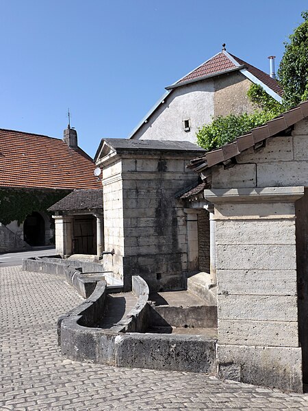 La Grande fontaine de Boult, située au nord‑est du village au pied du château, réunit lavoir, abreuvoir et fontaine. Construite en 1820‑1821 d'après les plans de l'architecte Georges Costain, elle présente un plan en arc de cercle centré sur l'édicule, appelé puisoir, qui abrite la fontaine. La galerie couverte destinée aux laveuses s'ouvre sur les bassins par une colonnade ; l'architecte l'avait prévue en bois, mais elle fut réalisée en pierre en 1821. Des colonnes appuyées sur le mur d'assise du lavoir soutiennent la couverture de la galerie, et les accès sont encadrés par des massifs en pierre de taille formant des pilastres. En 1861, l'ensemble a été déplacé de quelques mètres vers le nord. L'édifice est inscrit au titre des monuments historiques en 1996 et se situe sur la commune de Boult, dans le département de la Haute‑Saône.