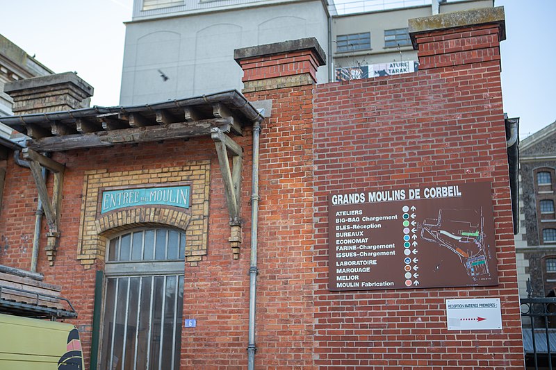 Façades et toitures de la tour élévatrice (cad. AH 197) : inscription par arrêté du 21 juillet 1987 ; Les parties suivantes des Grands Moulins de Corbeil, situées 6 place Galignani, sur la parcelle n° 5, figurant au cadastre section AH, telles que délimitées sur le plan annexé à l'arrêté : les façades et toitures du moulin de 1905, les façades sur l'avenue Darblay et les toitures de la centrale thermique de 1905 et 1910, une partie des façades et des toitures de la nouvelle centrale de 1917-1921, à l'intérieur de la centrale thermique de 1905 et 1910, le pont roulant en acier, à l'intérieur de la nouvelle centrale de 1917-1921, les murs décorés de faïence de la salle des machines : inscription par arrêté du 20 décembre 2024