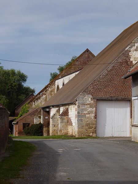 Les murs anciens en craie blanche ceinturent l'essentiel de l'ancienne ferme; parmi les constructions utilitaires, une maison du XVIIIe siècle subsiste, de dimensions modestes et sans particularité architecturale notable hormis une date gravée sur le linteau. Une petite chapelle probablement du XVe siècle, en pierre blanche, est orientée dans l'axe du chevet plat; elle accueillait une unique baie en arc brisé et sa charpente reposait sur des sablières simplement décorées, l'ensemble étant couvert de petites tuiles plates. On signalait encore il y a une trentaine d'années une statue en bois polychrome de la Vierge dans cette chapelle; enfin, des caves et celliers sous les constructions longeant le chemin vicinal n°6 complètent les éléments conservés de l'ancienne ferme.
