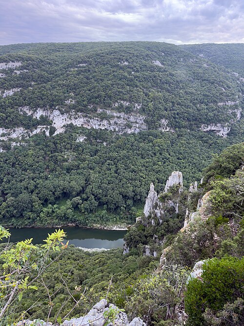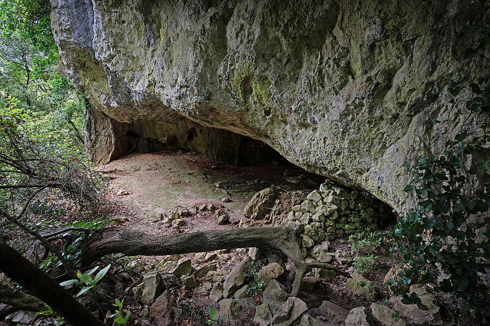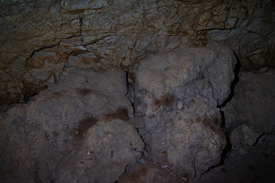 La Grotte aux Points, anciennement appelée grotte Yves, est une grotte ornée du Paléolithique supérieur située sur la commune d'Aiguèze, dans les gorges de l'Ardèche (rive droite, côté sud). Elle s'ouvre sous une saillie de falaise calcaire à 95 m d'altitude, presque en face de l'élément rocheux dit « la Cathédrale », et on peut l'atteindre depuis le GR 4 par une boucle de sentier. La cavité est un couloir subhorizontal dont le porche, orienté au nord, mesure environ 3 m de hauteur et 13 m de largeur ; la galerie s'étend sur 108 m, d'abord selon un axe nord‑sud puis est‑ouest, et les figures se situent à 75 m de l'entrée. Le porche a servi d'abri‑bergerie, dont subsiste un muret en pierres sèches, et des activités d'extraction, probablement entre la fin du XVIe et la seconde moitié du XIXe siècle, ont encombré le sol de remblais et modifié les volumes internes, ce qui complique l'interprétation des aménagements préhistoriques. Lors d'une sortie spéléologique le 7 novembre 1993, Éliette Brunel, Jean‑Marie Chauvet et Christian Hillaire ont repéré des signes peints à l'ocre rouge dans les parties profondes de la cavité ; ces signes ont été authentifiés par Jean Clottes en 1995, année du classement de la grotte au titre des Monuments historiques. Depuis 2011, la grotte fait l'objet de recherches pluridisciplinaires dans le cadre du projet « Datation Grottes Ornées » (DGO) dirigé par Julien Monney. L'ornementation pariétale, exclusivement rouge et vraisemblablement obtenue par estompage de l'ocre, présente des affinités stylistiques avec l'ornementation des premières salles de la grotte Chauvet, notamment par la présence de signes bilobés et de points‑paumes. Le bestiaire comprend trois bouquetins, un cheval et un bison ; les parois montrent également de nombreuses traces rouges, un tracé angulaire, deux signes bilobés et 59 ponctuations rouges, et des descriptions antérieures citent des ponctuations figurant bison, mammouth et cheval. Parmi les motifs, plusieurs empreintes de paume peintes (« points‑paumes ») portent des traces papillaires palmaires : les sillons palmaires, reconnus comme dermatoglyphes en 2002, ont été analysés par chiroscopie, et les empreintes identifiées sont exclusivement des mains droites. La grotte est inscrite au titre des Monuments historiques depuis le 29 mai 1995 ; un arrêté de classement du 18 novembre 2024 se substitue à cette inscription. Le site n'est pas ouvert à la visite. De nombreuses publications et rapports, notamment des travaux de Brunel, Chauvet, Hillaire et des numéros spéciaux dirigés par Julien Monney dans Karstologia, documentent les découvertes, les études topographiques, les analyses pigmentaires et les recherches chiroscopiques menées sur la grotte.