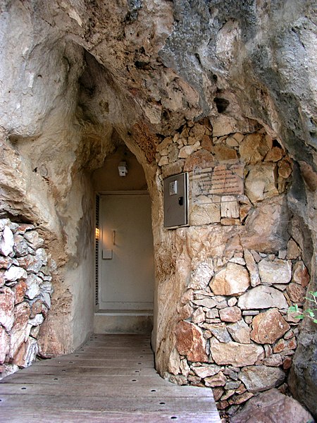 Située au lieu‑dit la Combe d'Arc, aussi appelé cirque d'Estre, entre 185 et 198 mètres d'altitude et à vingt‑cinq mètres sous le plateau calcaire, la cavité s'inscrit dans un ancien méandre de la paléo‑Ardèche dont l'encaissement a contribué à la formation du pont naturel du Pont d'Arc. L'entrée a connu plusieurs effondrements et a été définitivement obstruée par un éboulis d'environ 4 500 m3 au pied du rocher d'Abraham ; cet enrochement a favorisé la conservation du milieu souterrain.