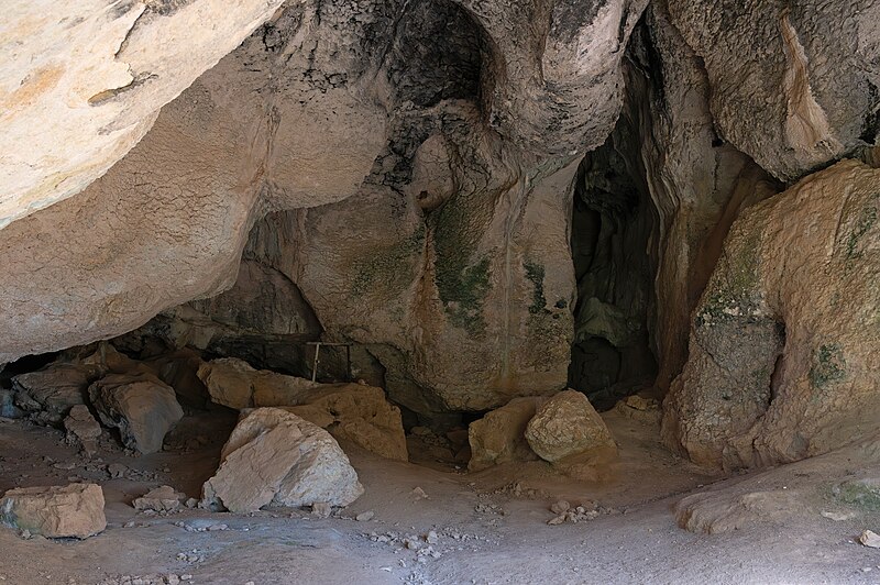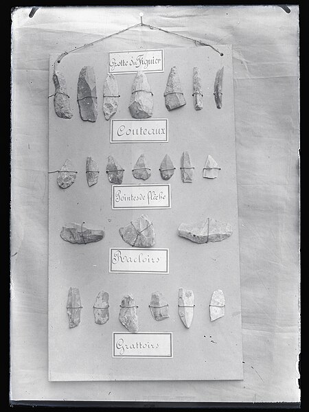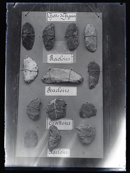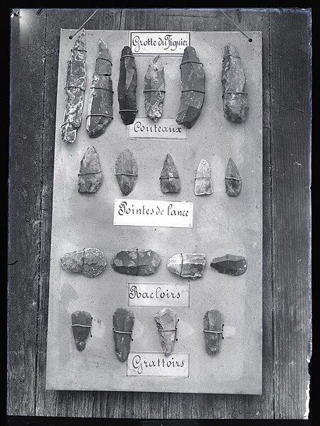 Les couches fouillées dans le vaste porche ont livré des occupations moustériennes de type Quina oriental, des ensembles aurignaciens comprenant lames aurignaciennes et lamelles Dufour, des niveaux solutréens avec pointes à face plane et feuilles de laurier, ainsi que du Magdalénien supérieur avec sagaies à doubles biseaux et à cannelure. Dans une galerie, a été mise au jour la sépulture d'un enfant d'environ cinq ans, couverte d'ocre et accompagnée d'une coquille perforée de Glycymeris, attribuée au Magdalénien.