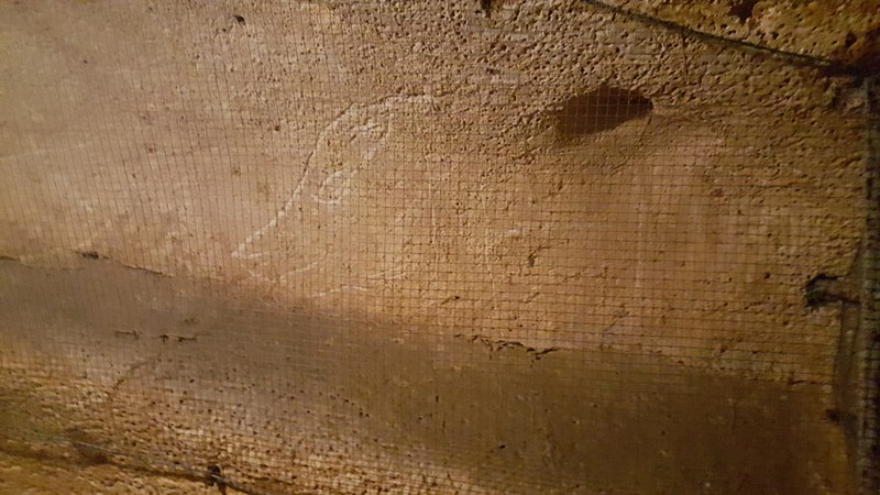 La frise dite « de la frise noire » ou chapelle des mammouths réunit onze mammouths, cinq bisons, quatre chevaux, quatre aurochs et un ensemble de ponctuations rouges ; l'exécution révèle une composition spiralée commencée par un grand cheval entouré de bisons puis de mammouths et enfin surchargée par des aurochs, et les dessins noirs, réalisés au charbon de bois, ont été attribués au Magdalénien ancien. Le panneau des chevaux ponctués, réalisé sur la face d'un bloc de 3,6 m sur 1,65 m, associe deux chevaux adossés, un grand poisson finement tracé en rouge, l'encolure d'un troisième cheval en rouge, six mains négatives noires, sept empreintes de pouces repliés rouges, un cercle entourant un ovale rouges et 252 signes de ponctuation (28 rouges et le reste noirs) ; l'analyse des pigments noirs employés pour les chevaux montre la présence d'oxydes de manganèse et de baryum ainsi que du charbon de bois. La datation au radiocarbone d'un cheval de ce panneau, réalisée par le Laboratoire des sciences du climat et de l'environnement de Gif‑sur‑Yvette, a donné 24 640 ± 390 ans avant le présent (AP), résultat interprété comme relevant du Gravettien récent dans le sud‑ouest de la France et compatible avec la présence des mains négatives.