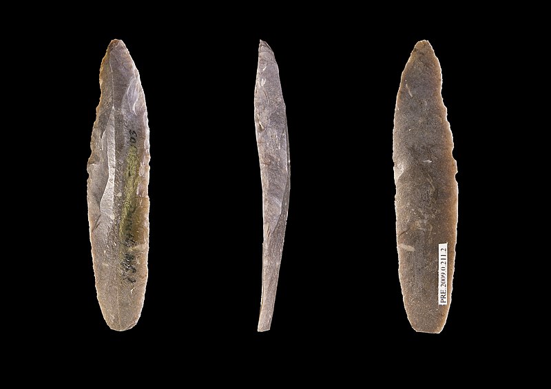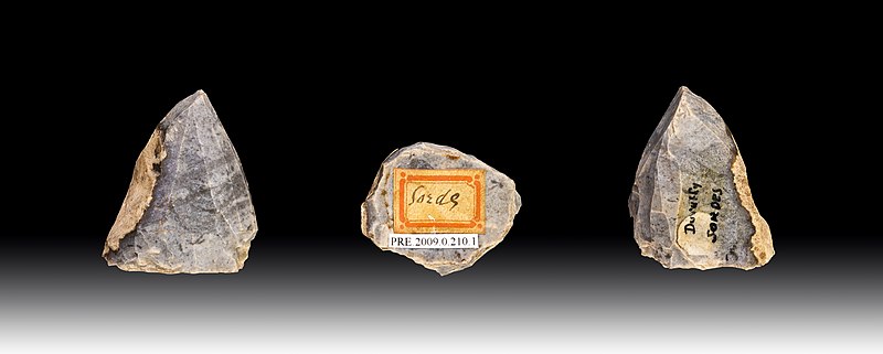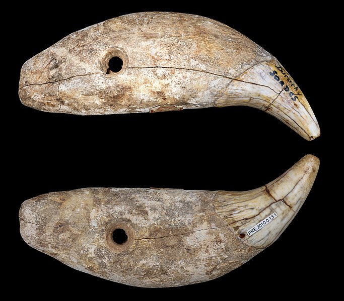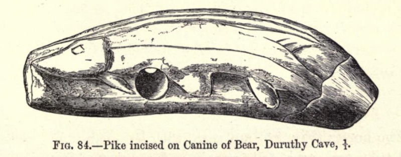 Les fouilles de 1874 mirent au jour une sépulture ; Ernest-Théodore Hamy publia la même année une étude des vestiges humains trouvés dans la grotte. L'industrie lithique du site comprend des nucléus et des lames retouchées, dont du matériel est conservé au Muséum de Toulouse. Parmi les objets d'ornement, une baguette demi-ronde recueillie par R. Arambourou dans la couche 3' porte trois gravures, dont la représentation d'un léporidé. Certaines dents du collier présentent des incisions et des figurations, comme un brochet ou un phoque gravés sur des canines d'ours, et des dents perforées d'ours et de lion sont également conservées au Muséum de Toulouse.