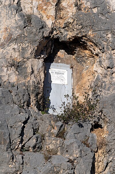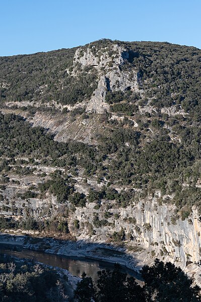 La grotte de la Tête du Lion est une grotte ornée située à Bidon, dans le sud de l'Ardèche, comportant des peintures pariétales attribuées à une période comprise entre le Gravettien et le Solutréen. Elle a été découverte début mars 1963 lors d'un tir de mine sur le chantier de la départementale D290 ; les spéléologues Robert Brun et Michel Pagès l'ont explorée à partir du 15 mars et mis au jour un panneau mural portant des figures pariétales. La grotte a été classée au titre des monuments historiques par arrêté du 15 juin 1964, et le tracé de la route a été modifié pour préserver la barre rocheuse qui la contient. Des fouilles ont été menées près de l'entrée en 1972 et 1973; l'étude de la cavité a repris en 2009 pour préciser sa datation, puis en 2022 afin d'aborder la question de l'accès à la grotte dans le contexte paléolithique. La commune de Bidon est propriétaire de la grotte, qui n'est pas ouverte au public. Le nom provient du Roc-de-la-Tête-du-Lion, appellation moderne donnée par les bateliers effectuant la descente touristique des gorges de l'Ardèche. Située à 165 m d'altitude sur la rive gauche de l'Ardèche, en retrait des gorges et au pied du massif du Colombier, la grotte a été reconnue sur 70 m de longueur et comporte trois parties séparées par des rétrécissements : une courte galerie avec quelques traces de peinture rouge, une petite salle centrale dite « la Rotonde » où se trouvent les peintures dans une abside latérale, et un long boyau terminal qui ne présente aucune trace de fréquentation préhistorique et qui n'a été rendu accessible qu'en 1973 après désobstruction d'une chatière. Dès les premières études, la question de l'accès paléolithique s'est posée : il semble que la grotte n'était accessible que par une étroite chatière, détruite lors du tir de mine de 1963, les sondages n'ayant révélé aucun puits d'accès, ce qui rendait l'entrée très difficile. Les parois ne montrent pas de délitage cryoclastique et aucun reste osseux d'animaux introduits naturellement n'a été découvert. En dehors de quelques traces effacées, d'un point rouge et de deux traits gravés proches de l'entrée, les représentations figurées se concentrent dans l'abside de la Rotonde. Le panneau principal réunit une représentation d'un bovidé peint à l'ocre rouge, deux têtes de bouquetins et plusieurs groupes de points. Le bovidé, probablement une femelle du type Bos primigenius, est tourné vers la gauche ; la tête est étroite, les cornes sont rendues en perspective semi-frontale, les pattes antérieures figurées en perspective et les pattes postérieures partiellement recouvertes par une coulée d'argile. Deux têtes de bouquetin mâles, peintes en rouge et à fortes encornures, sont associées au boviné, l'une devant le poitrail et l'autre sous le ventre. Au-dessus du bovidé se trouve un groupe rectangulaire de dix-sept points jaune-vert, un second groupe de sept points similaires est placé sur le flanc, et une série oblique de quatre points rouges plus un cinquième isolé complète l'ensemble. À 0,60 m à gauche de ce panneau, une représentation incomplète d'un cerf en ocre rouge, tournée vers le bovidé, est visible; quelques traces d'ocre rouge et deux ponctuations ovales subsistent également dans l'abside en direction de l'entrée. Le niveau d'occupation principal se situe à environ 30 cm sous la surface actuelle ; des charbons de bois, vraisemblablement issus de torches liées aux peintures et retrouvés dans la même couche que des traces d'ocre, ont été datés par le radiocarbone. Une datation réalisée en 1972 a donné 21 650 ± 800 BP (environ 19 700 av. J.-C.), ce qui correspondrait au Gravettien récent ou au Solutréen ancien ; une datation de 2009 sur un charbon a fourni 22 120 ± 150 BP (environ 26 020 av. J.-C.), résultat comparable à la datation de 1973.