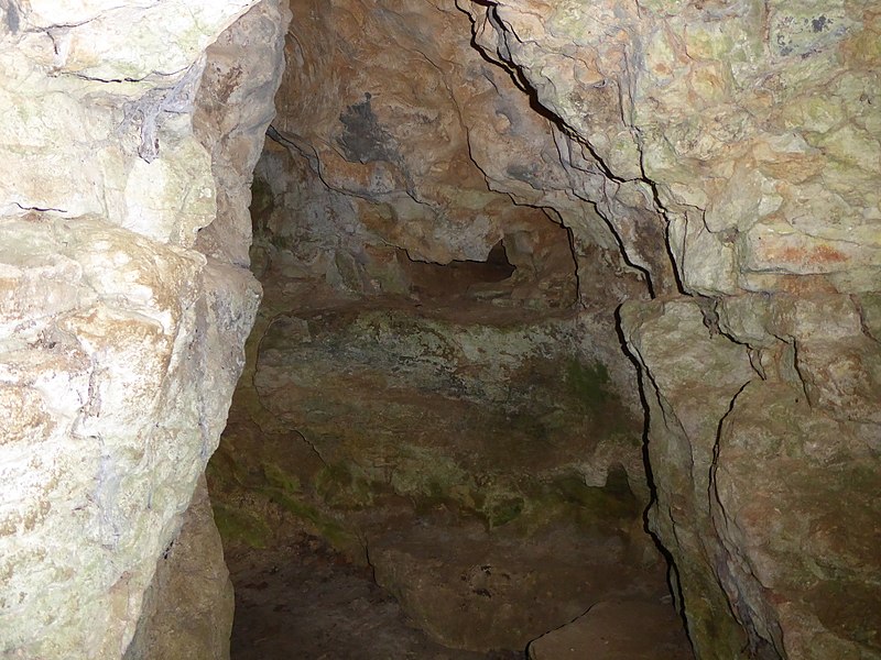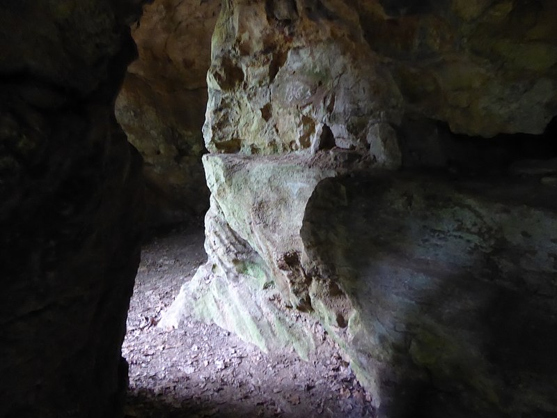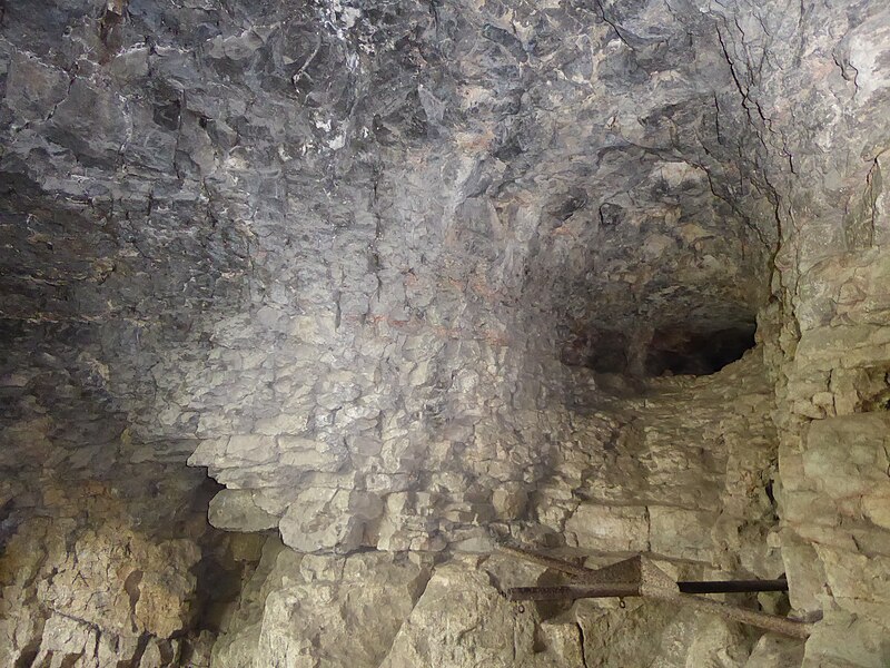 Nicolas Husson met au jour, dans la salle du Chapeau de Napoléon, les débuts des galeries de l'Ouest et de la galerie Transversale, des ossements d'ours des cavernes et de hyène des cavernes, examinés par Dominique-Alexandre Godron et Paul Gervais ; des restes humains et des pièces manufacturées comme des silex taillés, une amulette en bois de cerf ou de renne et un vase en verre bleu émaillé d'époque romaine sont découverts au niveau du labyrinthe et du portique. D'autres fouilles dans la galerie de l'Est par MM. Gaiffe et Benoît fils complètent ces découvertes.