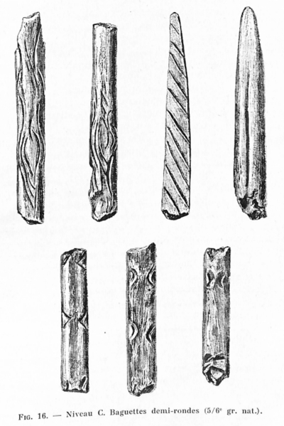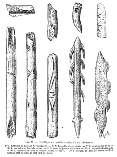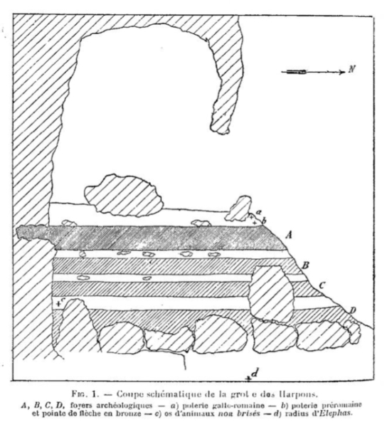 Les recherches ont été engagées à la fin du XIXe siècle puis intensifiées au début du XXe siècle, notamment par René de Saint‑Périer dont les fouilles dans les gorges de la Save ont livré de nombreux niveaux et une série de publications. Les campagnes ont repris après la guerre avec Louis Méroc puis se sont succédé à partir des années 1960 ; des inventaires et réexamen des collections ont été publiés par plusieurs chercheurs et des travaux récents portent en particulier sur les ensembles de l'abri des Harpons.
