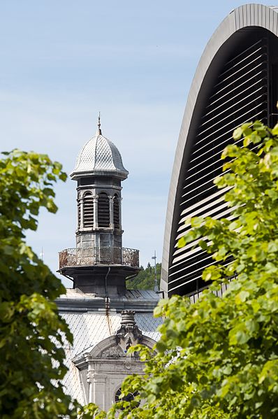 Le groupe scolaire‑Hôtel de ville‑Justice de paix de Morez, réalisé selon le projet retenu de Tony Ferret et Adrien Pinchard, réunit la mairie, la justice de paix et des établissements scolaires. Un programme de reconstruction adopté en 1876 prévoyait de remplacer la halle‑mairie par un groupe scolaire central associé à la mairie. Après un concours public de 1879 présentant onze projets, la municipalité retint la proposition de Ferret et Pinchard, adaptée le 1er août 1882 pour tenir compte du règlement de 1880. Le programme comprenait mairie, justice de paix, poste de police, conciergerie, logements, école maternelle, écoles primaires de garçons et de filles, dortoirs, musée, gymnase, remise pour les pompes à incendie et, ultérieurement, une école pratique d’industrie créée en 1895. La nouvelle construction empiéta sur l’emprise des bâtiments antérieurs, entraînant leur démolition et l’obligation de refaire le canal d’amenée de l’usine aval, que la nouvelle construction enjambe. L’adjudication des travaux eut lieu le 31 octobre 1887 ; la réception provisoire fut réalisée le 26 août 1891 et l’inauguration officielle se tint le 10 août 1890 en présence du ministre des Travaux publics Yves Guyot. Les sculptures ornant la façade — motif aux armes de la ville, six chapiteaux et six pendentifs — furent réalisées début novembre 1893 par G. Delorme, de Mâcon. Le pavillon central présente un fronton portant les armes de la ville au‑dessus du cadran d’une horloge monumentale donnée par la société Prost‑Frères, et il est surmonté d’un clocheton. Le site avait déjà fait l’objet de projets et d’aménagements au début du XIXe siècle ; le projet de Denis‑Philibert Lapret de 1817 formait un U ouvert à l’ouest, donnant à l’est sur la grande route (actuelle rue de la République), puis fut modifié et réalisé entre 1818 et 1821. Lors d’une reconnaissance en 1820, Lapret constata des lézardes dans les murs du rez‑de‑chaussée qui empêchèrent l’élévation prévue, d’où l’idée d’une extension pour abriter mairie, justice de paix et halle aux vins. L’architecte d’arrondissement Claude‑Marie Dalloz localisa cette extension au nord en 1835 et la construction fut confiée en 1836 aux entrepreneurs Ponard et Prost. Le corps principal fut agrandi en 1846 par une remise pour les pompes à incendie (architecte René‑Léon‑Victor Pourchot) puis surélevé en 1849 (architecte Vital Ponard). Le bâtiment accueillit aussi un bureau des douanes en 1849, une école communale d’horlogerie de 1855 à 1861–1862, un bureau télégraphique de 1860 à 1897 et, à partir de 1862, deux écoles de filles. En 1876, le conseil municipal confirma la volonté de reconstruire les écoles en prévoyant des établissements aux extrémités de la ville et un groupe central rattaché à la mairie ; un premier projet d’Achille Paillot en 1877 ne fut pas retenu. L’école pratique s’y développa ensuite, avec l’ouverture d’une section lunetterie en 1904 puis d’une section commerciale en 1907. Après un incendie qui détruisit une partie du comble de l’aile orientale le 11 mars 1923, cette aile fut rehaussée d’un deuxième étage par l’architecte Thévenaz (maison Simon et Couchepin). L’école pratique devint École nationale professionnelle en 1925 et quitta le site en 1932 lorsque lui fut dédié un nouveau bâtiment ; le musée quitta les lieux en 2003. La mairie a été inscrite à l’inventaire supplémentaire des monuments historiques le 25 juillet 2005. L’ensemble a conservé pour l’essentiel ses dispositions ; la cour, récemment unifiée, est aujourd’hui centrée par un préau hexagonal et l’aile est a été surélevée pour l’installation de l’école professionnelle.