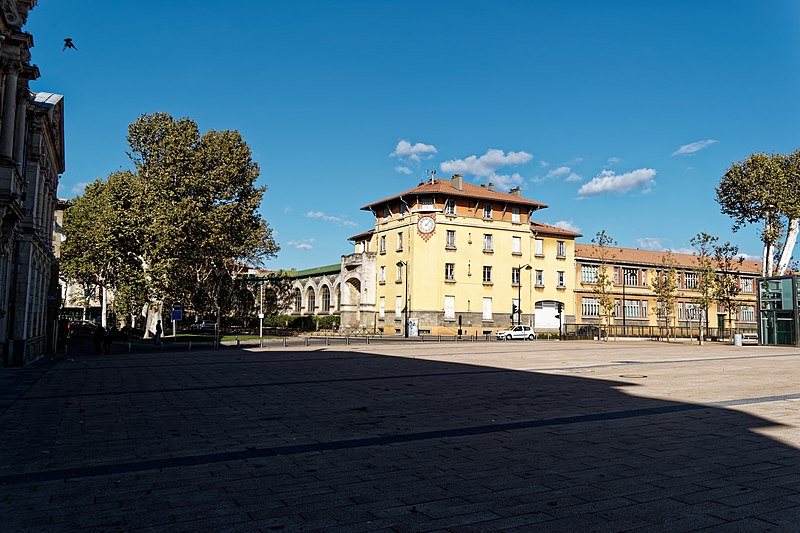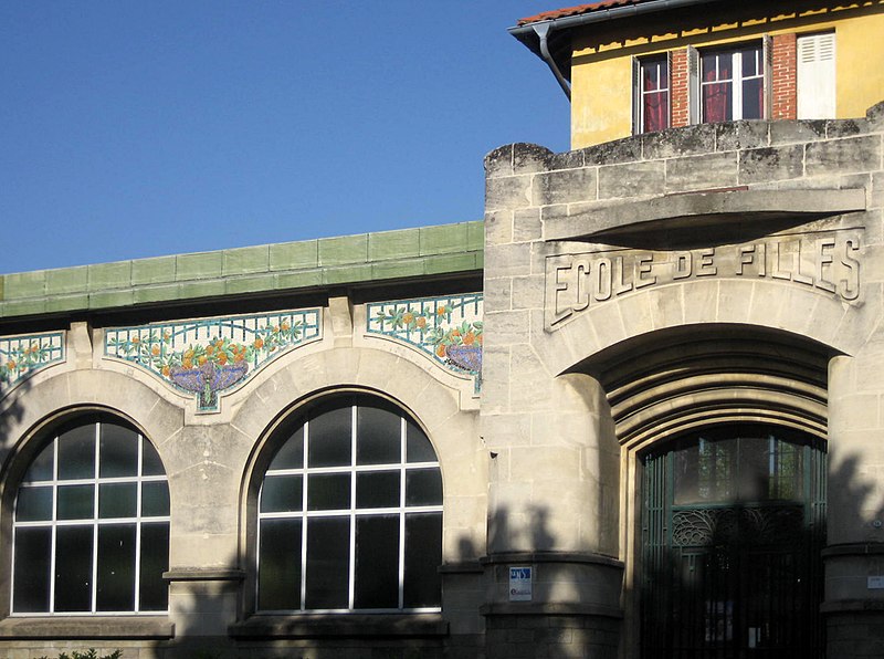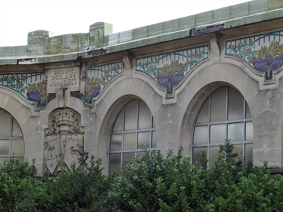 Les façades et toitures de toutes les ailes du quadrilatère et de la séparation entre les cours de récréation, ainsi que le préau en totalité, tels que délimités en rouge sur le plan cadastral annexé à l'arrêté (cad. AW 268) : inscription par arrêté du 7 novembre 2016