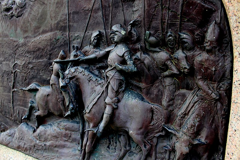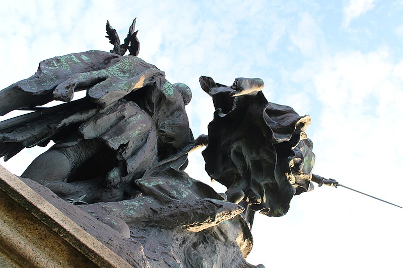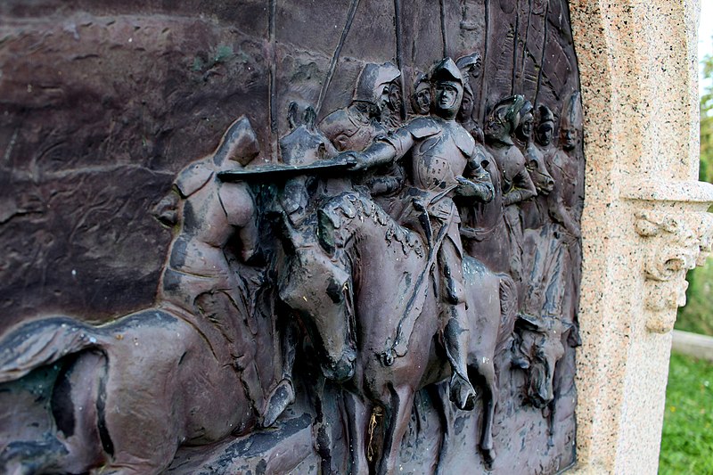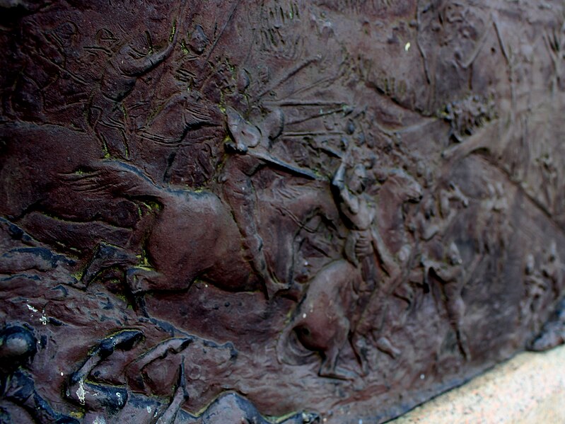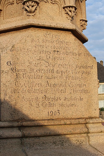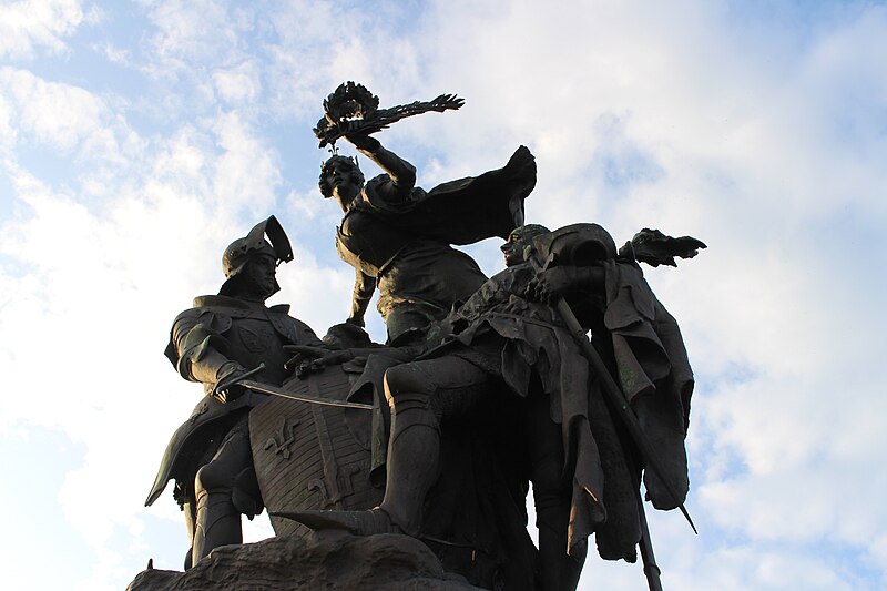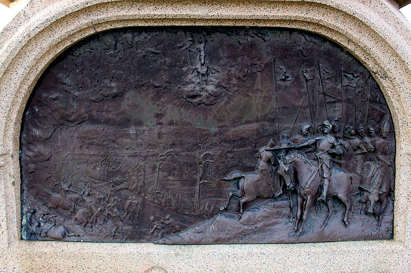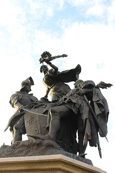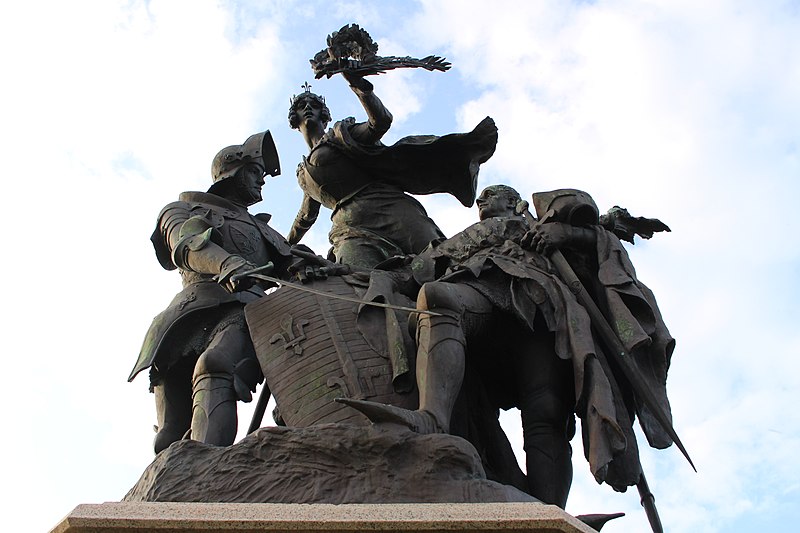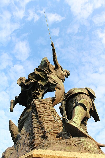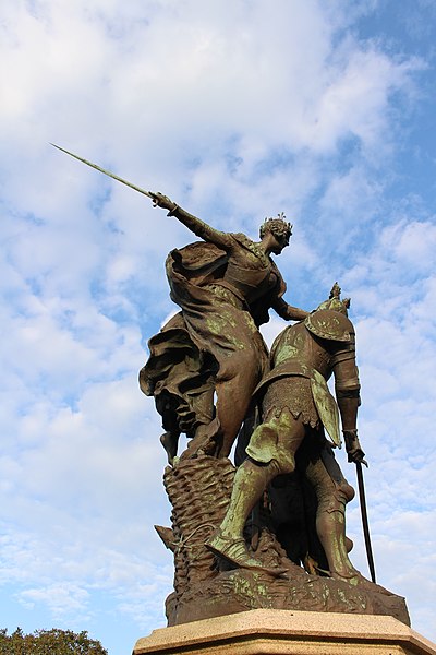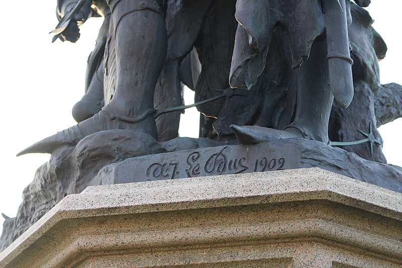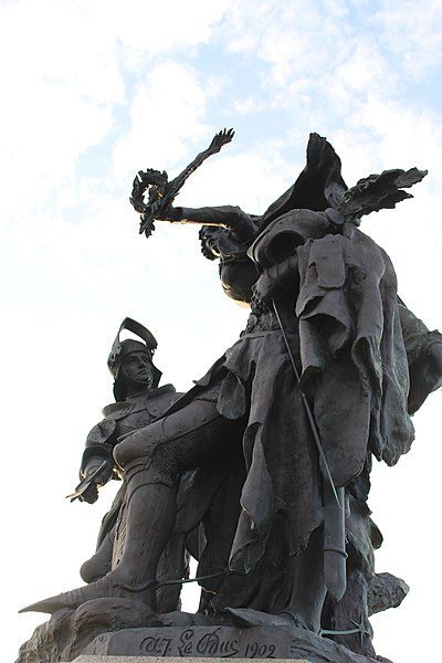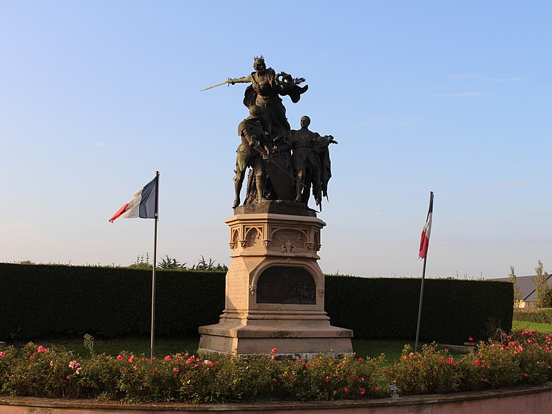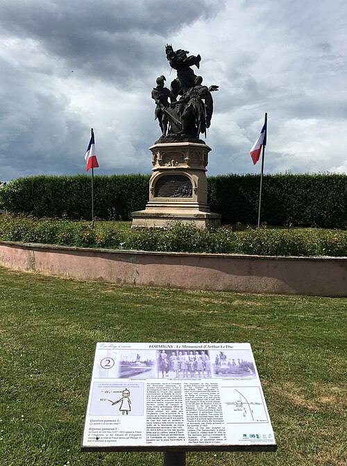 Le groupe sculpté de la bataille de Formigny se situe sur la commune de Formigny, dans le Calvados (Normandie). Il est l'œuvre du sculpteur Arthur Le Duc, qui avait déjà réalisé en 1894 une statue équestre du connétable de Richemond. Pour commémorer la bataille de Formigny du 15 avril 1450, Le Duc proposa une première maquette en 1900 et le monument fut mis en place en 1903, pour le 450e anniversaire de la bataille. Le piédestal, dessiné par l'architecte Auguste Nicolas, porte sur sa face principale un bas-relief en bronze relatant la bataille. La statue en bronze représente le connétable de Richemont et son neveu, le comte de Clermont, qui commandaient l'armée de Charles VII, encadrant une allégorie de la France victorieuse dans une composition pyramidale. L'allégorie tient dans la main gauche une couronne de lauriers et une palme, symboles de victoire, et brandit de la main droite une épée orientée vers Cherbourg. Pendant l'occupation, la fonte de la statue fut envisagée dans le cadre de la mobilisation des métaux non ferreux, mais elle fut finalement épargnée au motif qu'elle célébrait une victoire contre les Anglais, comme d'autres œuvres du même artiste. Le groupe sculpté avec son socle fait l'objet d'une inscription au titre des monuments historiques par arrêté du 18 août 2006. La statue appartient à la commune de Formigny. Un bas-relief illustre la scène de combat et permet d'identifier le sens commémoratif de l'ensemble.