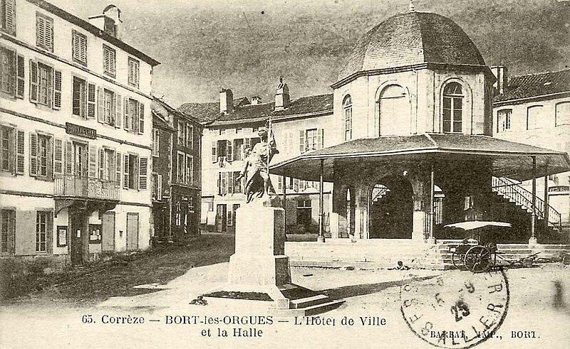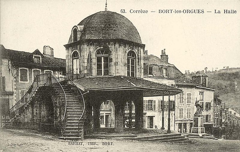 La halle de Bort-les-Orgues, ancien marché aux graines, a été construite en 1821 pour faciliter les transactions et le stockage du blé après l'époque révolutionnaire. Édifiée en pierre d'appareil, elle présente un plan octogonal posé sur un pavage de même forme, et une montée de cinq marches à l'est compense la dénivellation du sol. Chaque pan comporte au rez-de-chaussée une arcade en plein cintre avec un encadrement mouluré à deux bandeaux ; au-dessus, une fenêtre reprend la même forme d'arc et le même profil d'encadrement. La toiture prend la forme d'un dôme octogonal surmonté d'un épi. Sous le berceau voûté qui supporte le palier de l'escalier se trouvait autrefois une fontaine. Un auvent soutenu par des colonnes métalliques ornait un temps l'avant des arcades et servit de kiosque à musique ; cet auvent fut détruit en 1955. Située en centre-ville, face à la mairie de Bort-les-Orgues (Corrèze), la halle est protégée au titre des monuments historiques, son inscription datant de 1965. Le bâtiment accueille aujourd'hui une exposition de photographies.