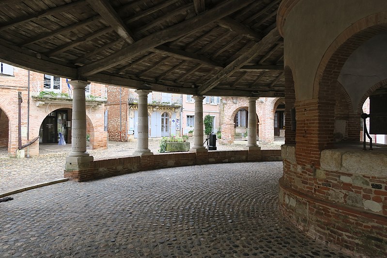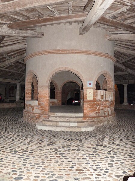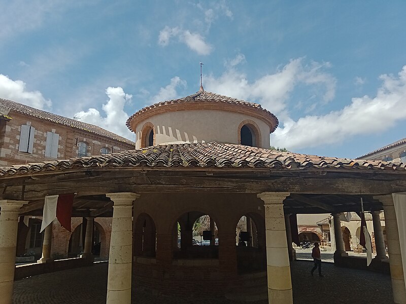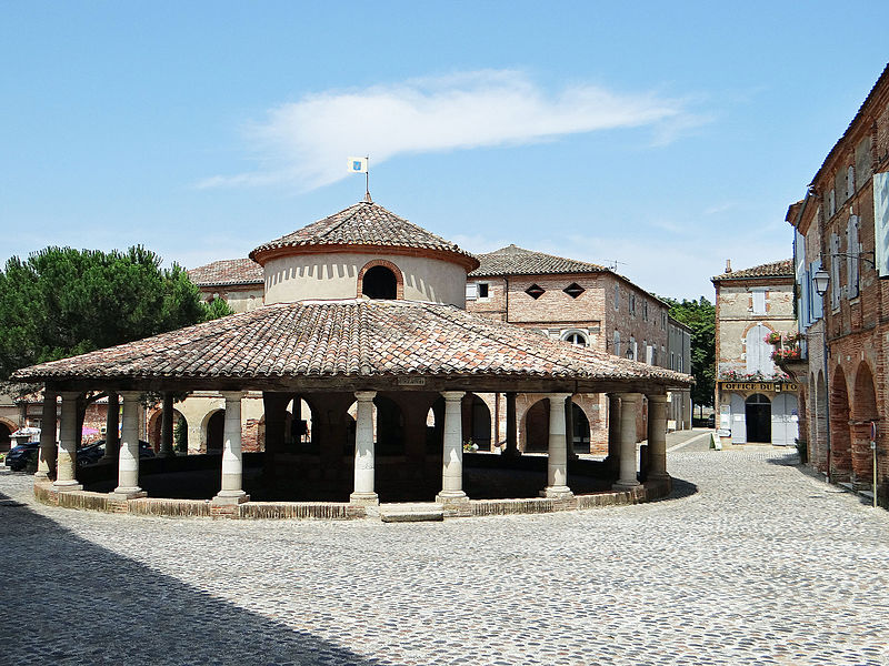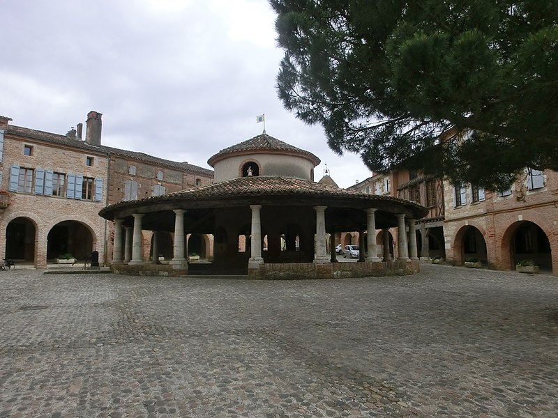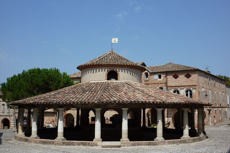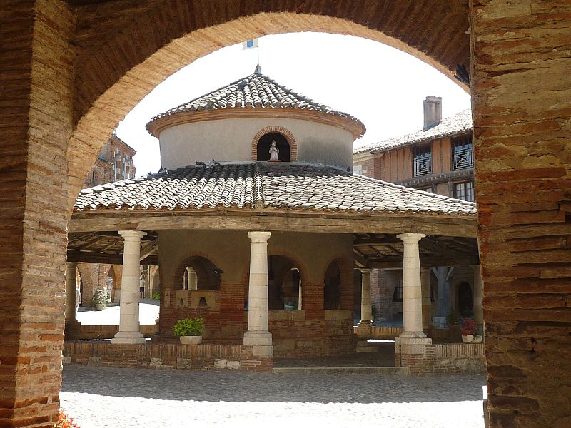 L'ancienne halle aux grains se situe au cœur d'Auvillar (Tarn-et-Garonne), au centre d'une place triangulaire bordée de maisons dont le rez-de-chaussée forme une galerie couverte, les « Enbans ». De plan circulaire, l'édifice se compose d'un portique extérieur soutenu par vingt colonnes doriques à fût renflé et d'un noyau central circulaire ajouré de huit arcades. Au-dessus du toit en tuiles canal, ce noyau porte une lanterne éclairée par quatre fenêtres. Le sol du noyau est surélevé de quelques marches et abrite les anciennes mesures en pierre ; c'est là que siégeaient les experts jurés et le fonctionnaire chargé de la police du marché. La charpente relie le noyau central au portique extérieur. L'étude d'une halle nouvelle pour remplacer l'ancienne débuta sous le Premier Empire et se poursuivit durant la Restauration pour aboutir au début de la Monarchie de Juillet. L'ancienne halle avait déjà fait l'objet de réparations en 1793, 1797 et 1819. Un premier projet de l'architecte départemental Fragneau, daté du 22 décembre 1823, fut approuvé en mars 1824, mais l'adjudication confiée à l'entrepreneur Rouzeau fut résiliée en octobre 1825. En 1827 Fragneau proposa un projet plus simple et moins coûteux ; l'adjudication fut finalement attribuée à Étienne Champès le 13 juin 1829. Malgré l'opposition d'ouvriers qui estimaient le prix trop bas, les travaux furent exécutés et Fragneau établit le décompte définitif le 9 août 1831. Une source indique que la halle a été construite entre 1825 et 1828 et qu'elle est due à l'architecte Fragneau. L'édifice a été classé au titre des monuments historiques le 30 avril 1946.