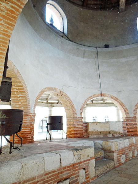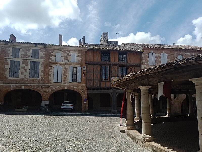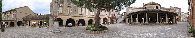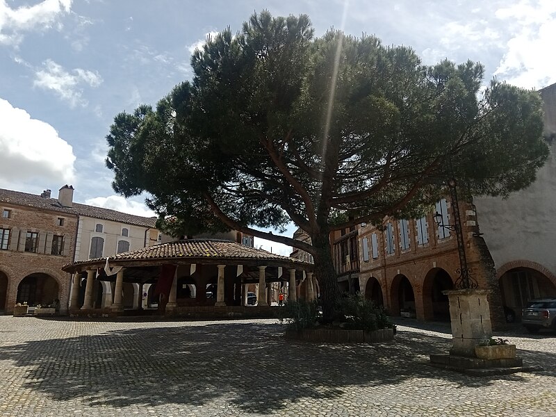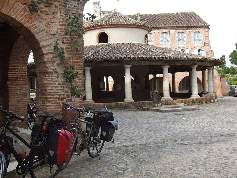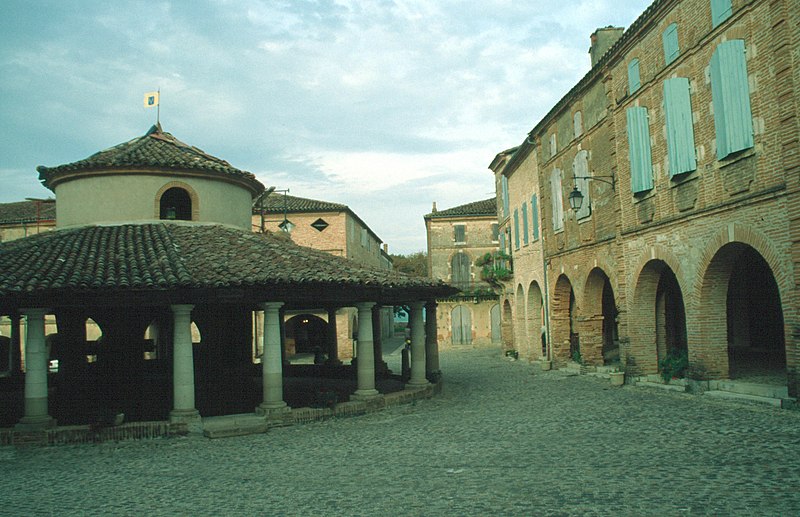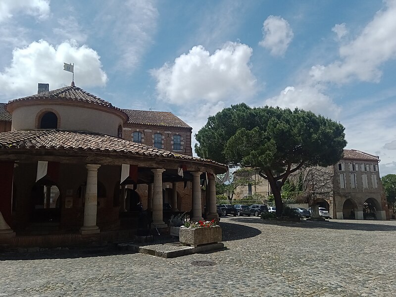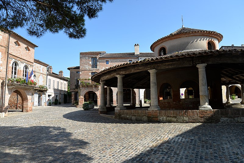 L'ancienne halle aux grains se situe au cœur d'Auvillar (Tarn-et-Garonne), au centre d'une place triangulaire bordée de maisons dont le rez-de-chaussée forme une galerie couverte, les « Enbans ». De plan circulaire, l'édifice se compose d'un portique extérieur soutenu par vingt colonnes doriques à fût renflé et d'un noyau central circulaire ajouré de huit arcades. Au-dessus du toit en tuiles canal, ce noyau porte une lanterne éclairée par quatre fenêtres. Le sol du noyau est surélevé de quelques marches et abrite les anciennes mesures en pierre ; c'est là que siégeaient les experts jurés et le fonctionnaire chargé de la police du marché. La charpente relie le noyau central au portique extérieur. L'étude d'une halle nouvelle pour remplacer l'ancienne débuta sous le Premier Empire et se poursuivit durant la Restauration pour aboutir au début de la Monarchie de Juillet. L'ancienne halle avait déjà fait l'objet de réparations en 1793, 1797 et 1819. Un premier projet de l'architecte départemental Fragneau, daté du 22 décembre 1823, fut approuvé en mars 1824, mais l'adjudication confiée à l'entrepreneur Rouzeau fut résiliée en octobre 1825. En 1827 Fragneau proposa un projet plus simple et moins coûteux ; l'adjudication fut finalement attribuée à Étienne Champès le 13 juin 1829. Malgré l'opposition d'ouvriers qui estimaient le prix trop bas, les travaux furent exécutés et Fragneau établit le décompte définitif le 9 août 1831. Une source indique que la halle a été construite entre 1825 et 1828 et qu'elle est due à l'architecte Fragneau. L'édifice a été classé au titre des monuments historiques le 30 avril 1946.