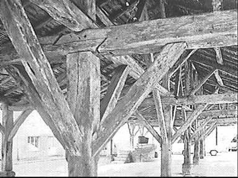 Édification de la halle en bois sur la place des Cornières.