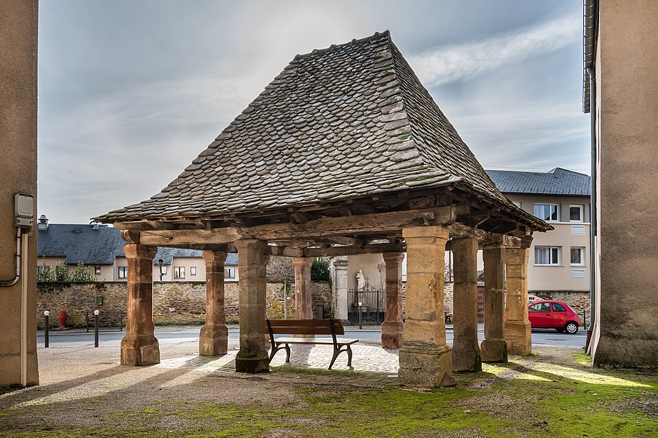 La halle de Calmont, située à Calmont-de-Plancatge dans le département de l'Aveyron, est un petit édifice de plan carré. Elle est composée de douze piliers carrés en pierre qui supportent la charpente. L'édifice est classé au titre des monuments historiques en 1937. Des ressources en ligne, notamment la base Mérimée et les portails consacrés à l’Aveyron et aux monuments historiques, fournissent des informations complémentaires.