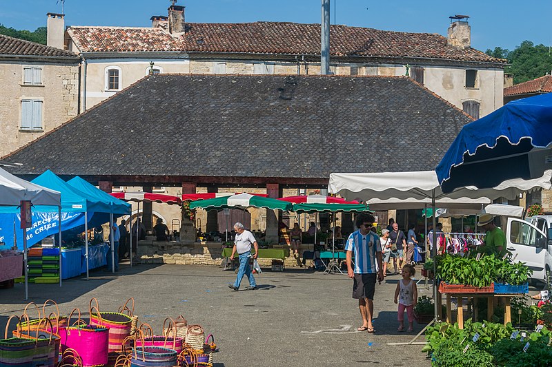 La halle de Caylus est un marché couvert situé au centre de la ville, sur la place de la mairie, dans le département de Tarn‑et‑Garonne (région Midi‑Pyrénées). La construction est traditionnellement attribuée au XVe siècle ; selon une source, elle aurait été réalisée en 1505 et 1506. À l'origine, elle était composée de quatorze piliers. Autrefois couverte en pierre, sa toiture fut remplacée par de la tuile plate au milieu du XIXe siècle, puis par de l'ardoise au début du XXe siècle, d'après une carte postale ancienne. Au début du XXe siècle, la halle fut déplacée et agrandie : elle fut reconstruite et allongée en 1905‑1906 par Henri Chaine, architecte en chef des monuments historiques, et les travaux de déplacement et d'agrandissement, motivés par des gênes à la circulation lors du marché, s'étendirent de 1905 à 1908. Elle a été classée au titre des monuments historiques en 1900.