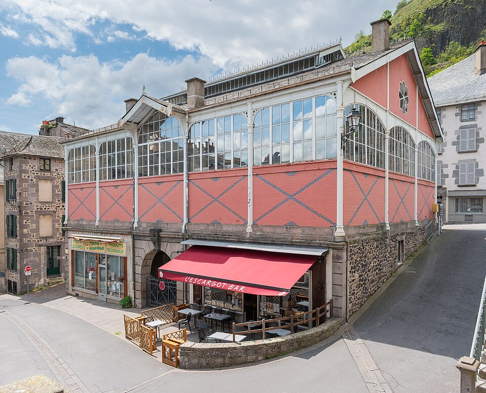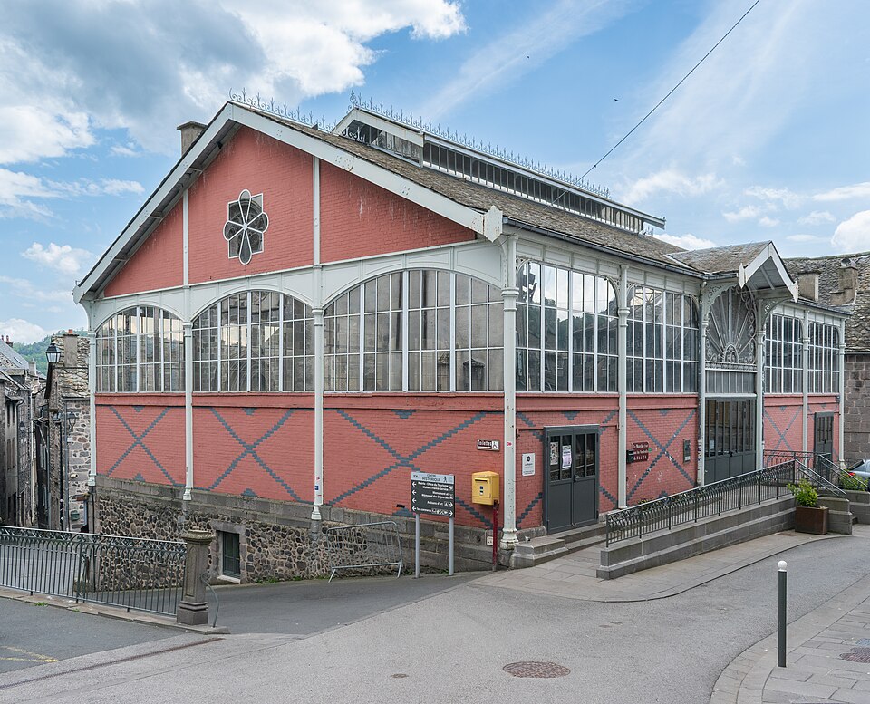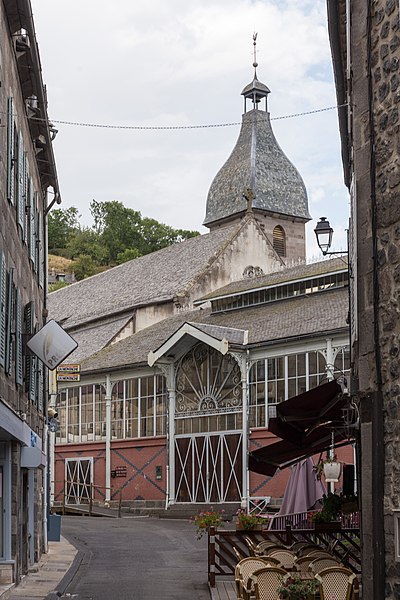 La halle de Murat, située rue Saint‑Michel au centre de Murat, en Auvergne‑Rhône‑Alpes, est une construction en fer et verre. Achevée en 1891, elle s'inspire des halles « Baltard » de l'époque de Napoléon III. Restaurée en 1988, elle présente une structure métallique soutenue par des colonnes en fonte qui maximisent l'espace et des baies vitrées alors innovantes. Le rez‑de‑chaussée était consacré aux « docks à fromages ». La halle est inscrite au titre des monuments historiques par arrêté du 7 octobre 1991.