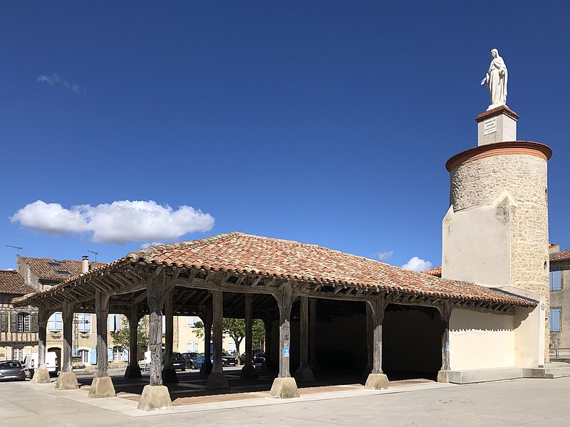 La halle de Saint-Félix-Lauragais, située place Guillaume de Nogaret au centre de la commune de la Haute-Garonne, est un édifice médiéval à poutres apparentes. L'ouvrage repose sur seize piliers octogonaux en bois qui portent des clés de pierre ; leurs bases et chapiteaux moulurés soutiennent les sablières et les fermes de la toiture. Une tour d'horloge est adossée au pignon de la halle. La halle est construite au XIIIe siècle. En 1557, la maison commune est élevée au‑dessus de la halle lors de l'attribution par le roi Henri III du rang de baronnie à la ville. En 1862, le beffroi est surmonté d'une Vierge (référence à confirmer). La halle est inscrite au titre des monuments historiques par arrêté du 9 novembre 1926.