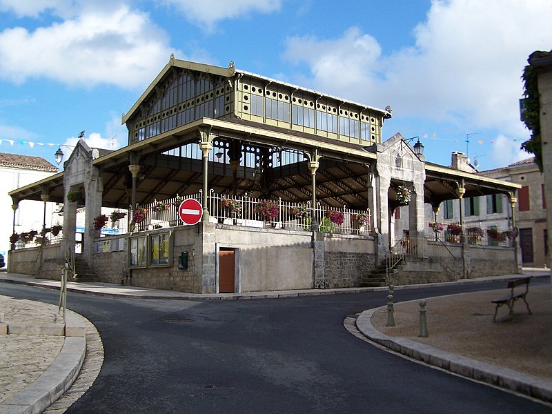 Édifiée de 1909 à 1913 d'après les plans de l'architecte bordelais Auguste Bontemps, la halle se compose de deux éléments : des galeries extérieures et, au centre, une verrière couverte d'un toit à deux pans. Les galeries ouvertes s'appuient sur des piliers en fonte aux quatre angles, ainsi que deux piliers supplémentaires au milieu des côtés. Quatre portes monumentales en pierre, chacune surmontée d'un fronton triangulaire, occupent le centre des façades.