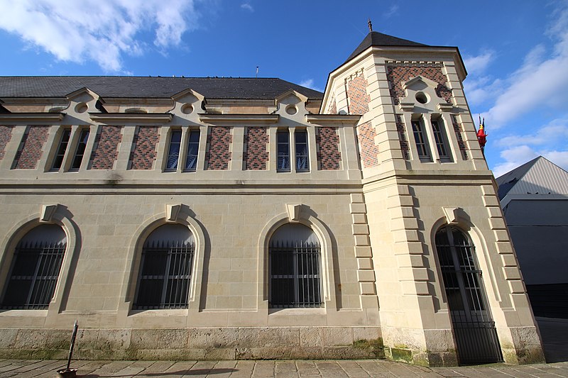La Halle aux grains de Saint-Calais, dans la Sarthe, est un édifice protégé au titre des monuments historiques. Construit au milieu du XIXe siècle en pierres de tuffeau et en briques par l'architecte Eugène Landron, il reprend le courant historiciste de cette époque. La charpente, en forme de coque de bateau inversée, date du XVe siècle et provient de l'église abbatiale. Inaugurée le 4 septembre 1864, la halle a été réaménagée en 1952 pour accueillir un marché couvert au rez-de-chaussée et une salle de fêtes à l'étage. L'édifice est inscrit au titre des monuments historiques depuis 1987. Les principales sources d'information mentionnées sont un dépliant de découverte du patrimoine de Saint-Calais, la base Mérimée et des documents visuels déposés sur Wikimedia Commons.