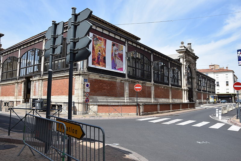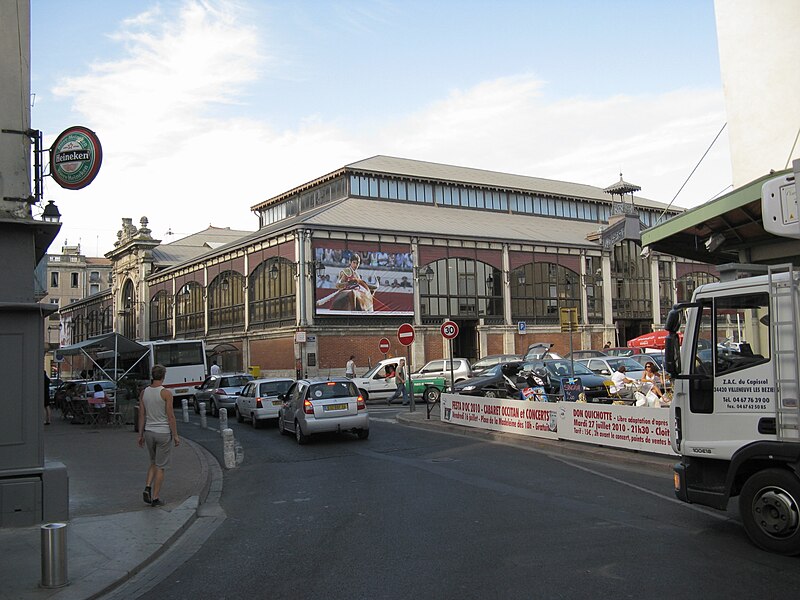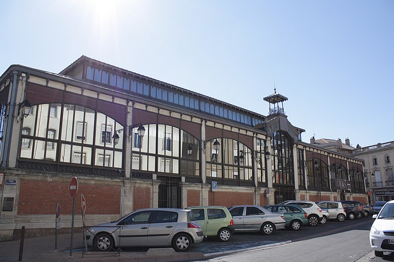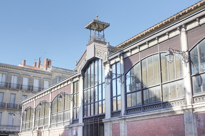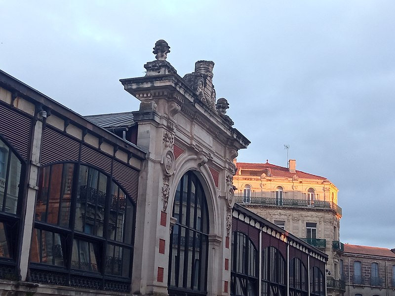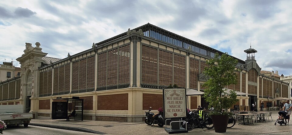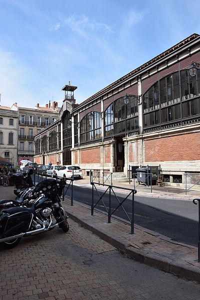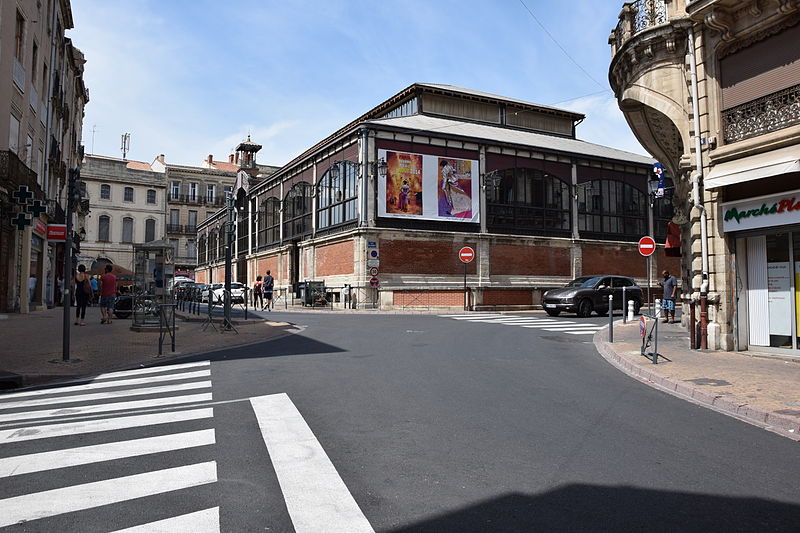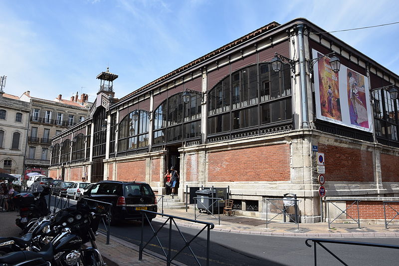 Les halles centrales de Béziers (Hérault) occupent un bâtiment au plan rectangulaire, organisé en trois nefs transversales couvertes individuellement. Une structure et une charpente métalliques assurent le soutien de la couverture, tandis que de larges verrières percent les parties hautes sur les côtés. L'entrée principale, située au sud-est, s'ouvre dans l'axe de la façade. Le soubassement des façades est en briques et ponctué de pilastres nus en pierre. Édifiées en 1891 à l'emplacement d'une église romane dédiée à saint Félix, rasée en 1815, elles relèvent du type Baltard et abritent vingt-et-un étals de commerçants et producteurs locaux. Les halles ont été inscrites aux monuments historiques le 8 octobre 1984 et ont fait l'objet d'une rénovation en 1987.