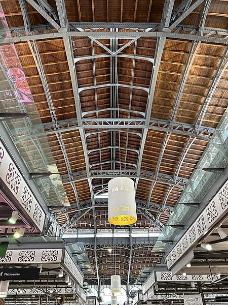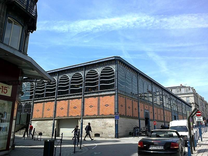 Les Halles centrales de Limoges, situées place de la Motte dans le quartier historique du Château, constituent le principal des deux marchés couverts de la commune de Limoges (Haute-Vienne). Construites entre 1885 et 1889, l'édifice est parfois indiqué comme achevé en 1899 et a été attribué de façon incertaine à Gustave Eiffel ; la fabrication a toutefois été réalisée par les confrères Pesce et Lévesque, après une sollicitation infructueuse de l'entreprise d'Eiffel. Les halles sont inscrites au titre des monuments historiques depuis le 16 août 1976. En mars 2018, la ville a lancé un important chantier de rénovation ; après près d'un an et demi de travaux, les halles ont rouvert au public le 16 novembre 2019, puis été inaugurées officiellement le 23 novembre 2019, accueillant de nouveaux commerces. De plan rectangulaire, le bâtiment associe pierres de taille, briques, métal, verre et zinc découpé : le soubassement en pierres de taille est souligné d'un cordon semi-circulaire, tandis que les murs présentent des briques roses rehaussées d'un dessin en briques vert foncé. Les verrières en plein cintre reposent sur des armatures de fer et sont surmontées d'arcs en fer ajourés ornés de motifs floraux et de volutes. Une frise en porcelaine réalisée par l'entreprise Guérin orne la façade ; elle se compose de 368 panneaux représentant les produits vendus dans les halles, tandis qu'une frise de carreaux de céramique illustre fleurs et oiseaux. La corniche en fer, surmontée de multiples consoles, et les portes en fer ajouré, décorées et coiffées de ferronneries, complètent l'ornementation extérieure. L'ouvrage est couvert par une charpente métallique visible à l'intérieur, caractéristique de l'époque et souvent rapprochée du style d'Eiffel.