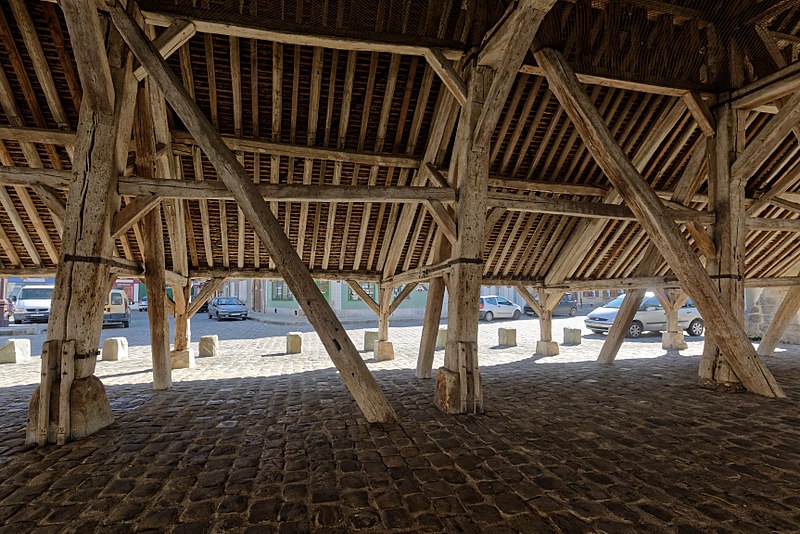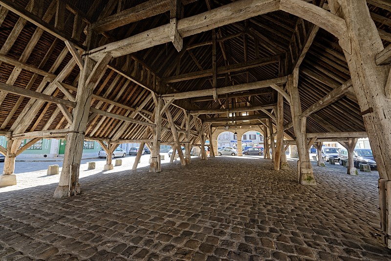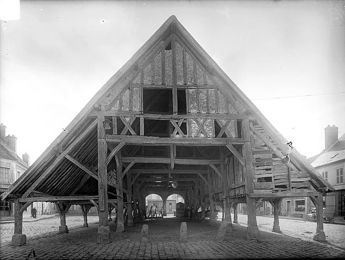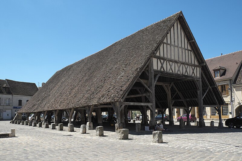 Les halles d'Égreville, situées place Massenet à côté de l'église au centre du village, sont un édifice de Seine-et-Marne (région Île-de-France) classé monument historique par arrêté du 12 octobre 1912 en tant que propriété communale. L'édifice a sans doute été élevé à l'emplacement d'une construction antérieure mentionnée depuis le XIIe ou le XIIIe siècle. La halle charpentée, datée du début du XVIe siècle, adopte un plan rectangulaire composé d'un vaisseau central et de deux vaisseaux latéraux. Elle est organisée sur sept travées et repose sur des poteaux de charpente. Cette configuration traduit son usage traditionnel de marché couvert et son architecture en bois. L'ouvrage est notable par sa charpente et sa lisibilité structurelle sur le site villageois, à proximité immédiate de l'église Saint-Martin. La principale référence bibliographique disponible est Le Patrimoine des communes de Seine-et-Marne de Jean-Luc Flohic (2001). Pour compléter les informations, on peut consulter les notices et ressources en ligne telles que Mérimée et Structurae, ainsi que les portails consacrés à l'architecture, à l'urbanisme et aux monuments historiques. Parmi les édifices proches ou liés à l'histoire locale figurent l'église Saint-Martin d'Égreville, le château d'Égreville et les halles de Beaumont-du-Gâtinais.