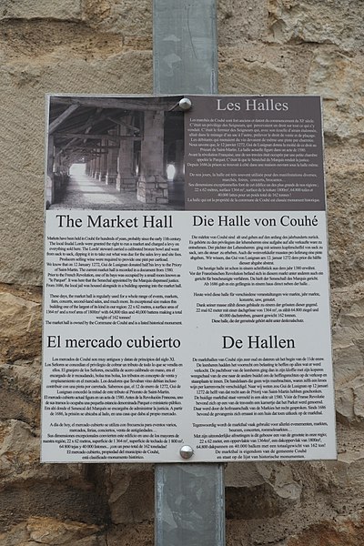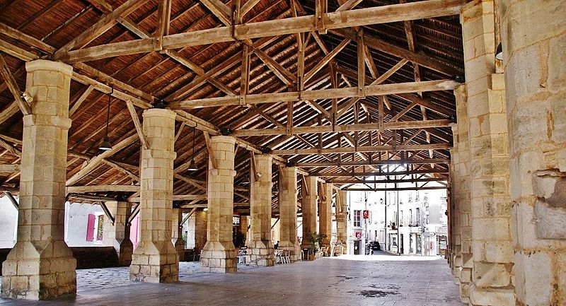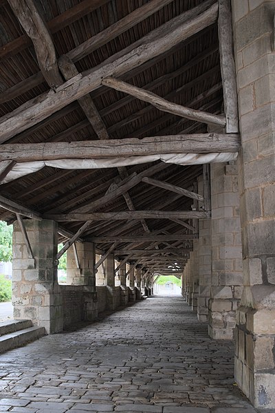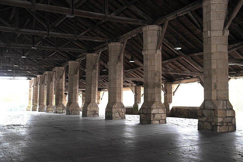 Les halles comprennent trois nefs et treize travées, formées par deux rangées de gros piliers octogonaux en pierre.