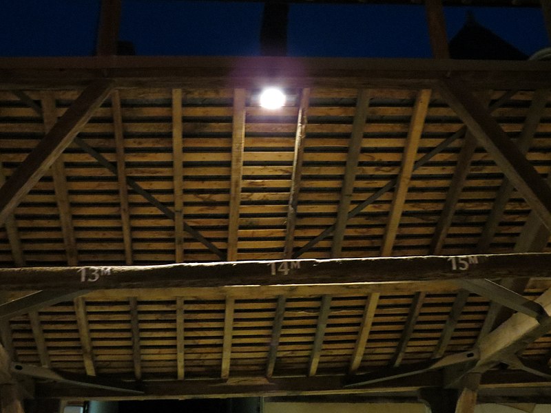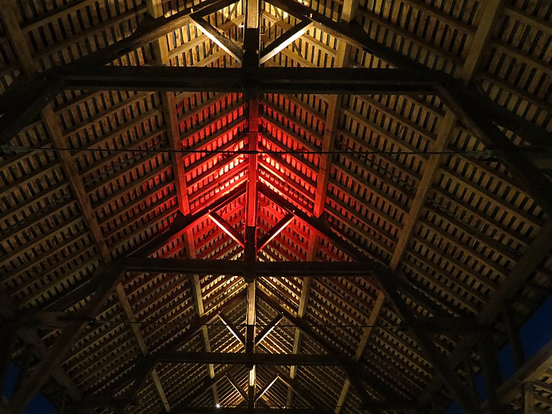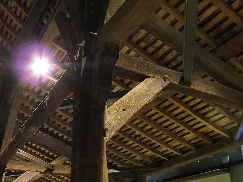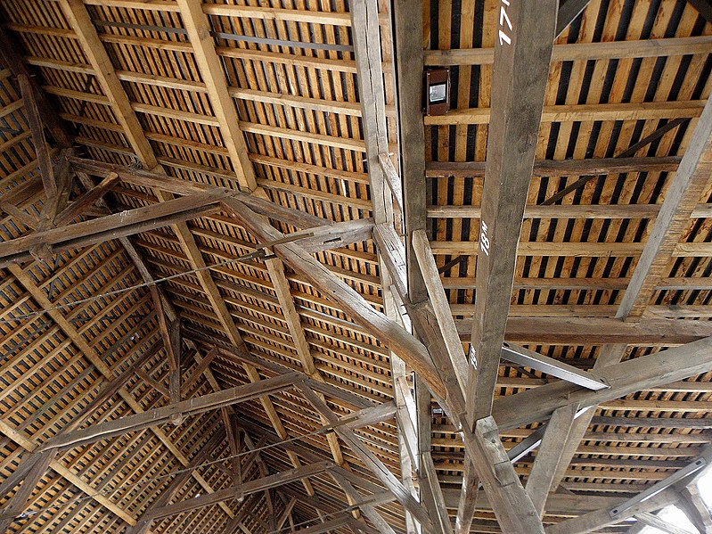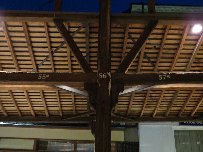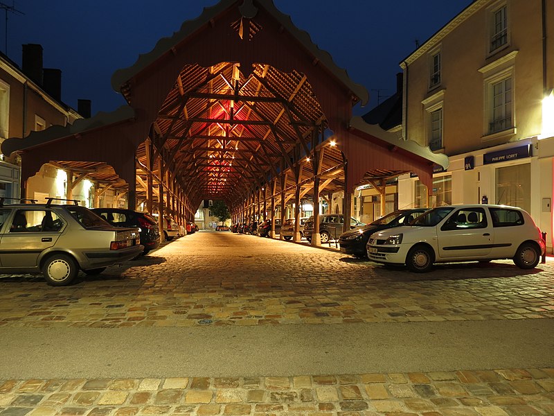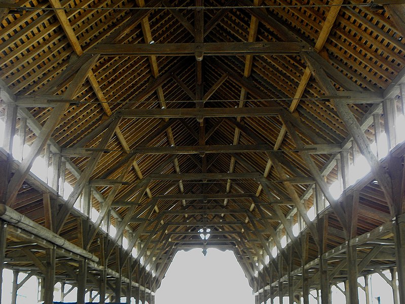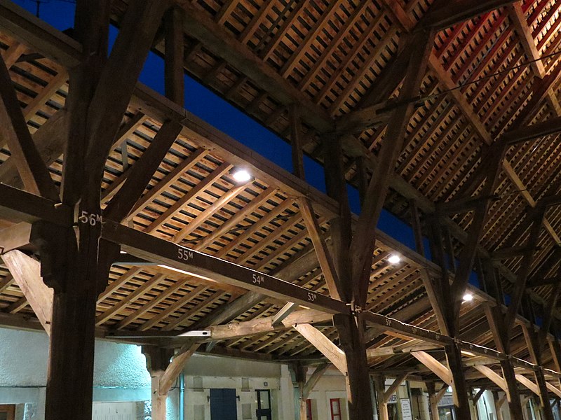 Les halles de Craon, en Mayenne, sont un édifice en bois dont la structure actuelle résulte d'une reconstruction menée en 1849-1850. Des halles sont signalées à Craon dès le XIIe siècle, et sous l'Ancien Régime elles accueillaient le commerce des bestiaux, du grain et du fil de lin. Après l'incendie de l'ancien hôpital au XVIIe siècle, elles servirent de refuge aux mendiants et devinrent une étape principale lors des processions religieuses, où l'on disposait des reposoirs et affichait les avis à la population. Au début des années 1830, les halles appartenaient à M. Letort-Beauchêne, ancien maire, puis leur vente à la commune fut approuvée par une ordonnance de novembre 1831 signée de Louis-Philippe Ier. En 1848, une crise interrompit de nombreux projets privés ; en 1849 il fut décidé de reconstruire totalement les halles pour occuper les ouvriers, sur des plans de l'architecte M. Moll et avec la réalisation du charpentier Victor Gasnier. Le financement devait être assuré par les riverains au moyen d'une cotisation de 20 francs par mètre de façade le long des halles, une mesure qui suscita le refus de paiement de plusieurs propriétaires. Les travaux furent achevés vers le milieu de 1850. En 1902, une pétition de trente-deux personnes demanda la destruction des halles pour danger d'incendie, tandis qu'une autre, rassemblant quarante-six signatures, réclamait leur conservation ; la municipalité refusa la démolition en raison du rôle commercial et fiscal du bâtiment. Une nouvelle tentative en 1924 obtint le même refus municipal, soulignant également que les halles abritaient les manifestations par temps de pluie et donnaient au quartier un cachet particulier remarqué des visiteurs. L'édifice a été inscrit au titre des monuments historiques en 1984 et a fait l'objet d'une campagne de restauration en 2010-2011. Sur le plan architectural, la halle présente une nef et des collatéraux couverts par une charpente apparente dont les détails et les inscriptions sont remarquables.