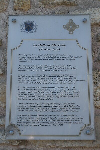 La halle de Méréville, située dans la commune de Méréville (Essonne), est un édifice du XVIe siècle. Elle est classée au titre des monuments historiques depuis le 13 août 1921. Des notices et illustrations sont accessibles dans la base Mérimée et sur Wikimedia Commons, ainsi que sur des sites consacrés au petit patrimoine ; un article du Parisien lui a également été consacré le 27 avril 2011.