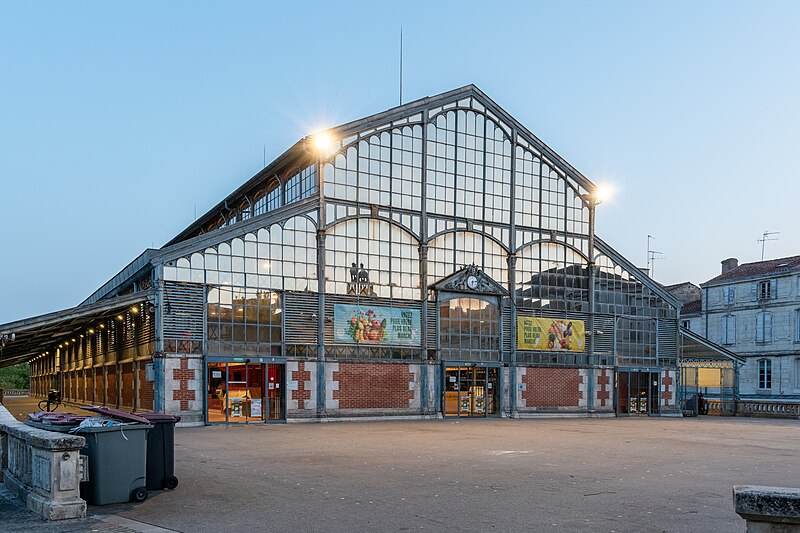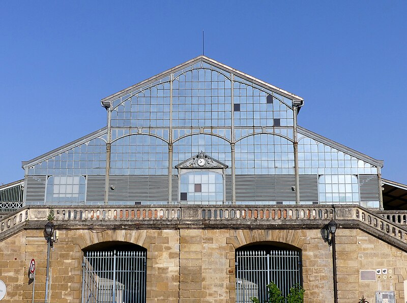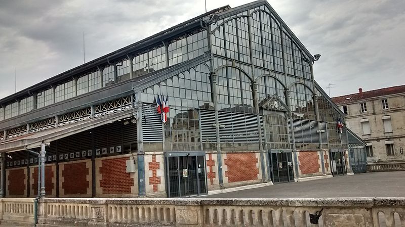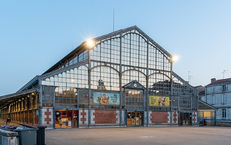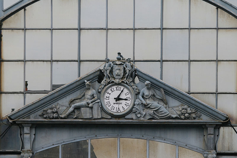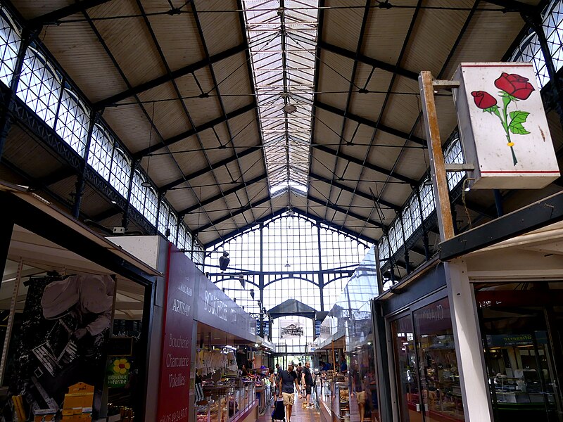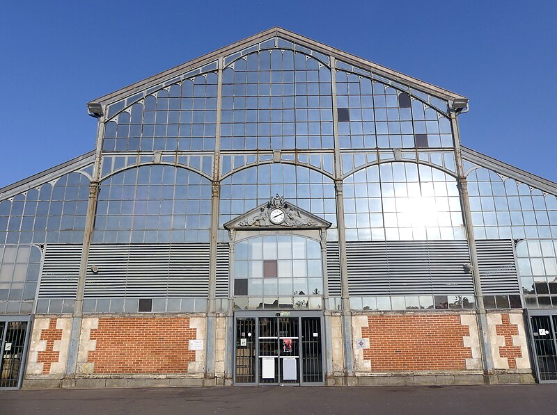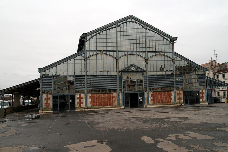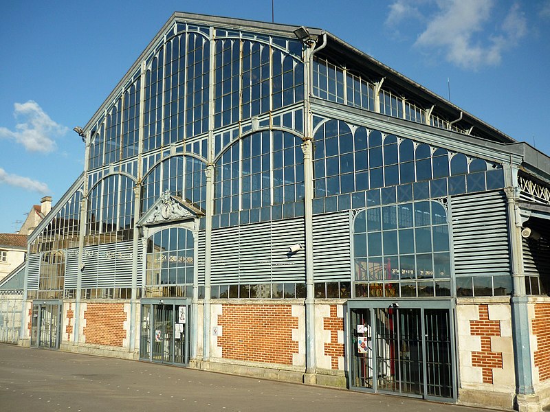 Le concours pour la construction de la halle, lancé en 1866, a été remporté par l'architecte Durand. Les travaux ont été exécutés entre 1868 et 1871; les abris extérieurs datent de 1928. L'édifice se divise en deux parties : l'une, voûtée, forme le soubassement ; l'autre est couverte d'une charpente métallique. La partie en fer et verre se présente comme un grand vaisseau rectangulaire sous une couverture à deux pans, coiffée d'un lanterneau et intérieurement divisée en trois nefs. Les portes d'accès sont ornées de colonnes et d'un fronton triangulaire. Une place s'est développée sur le pourtour.