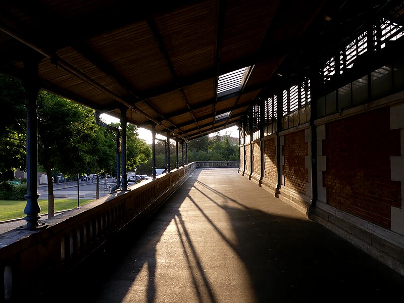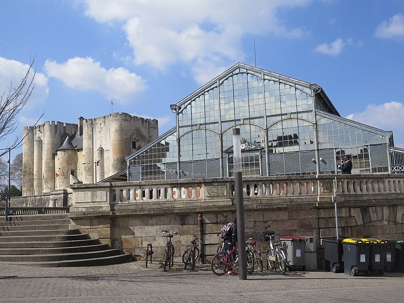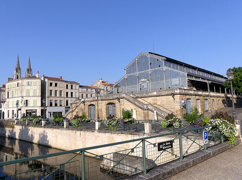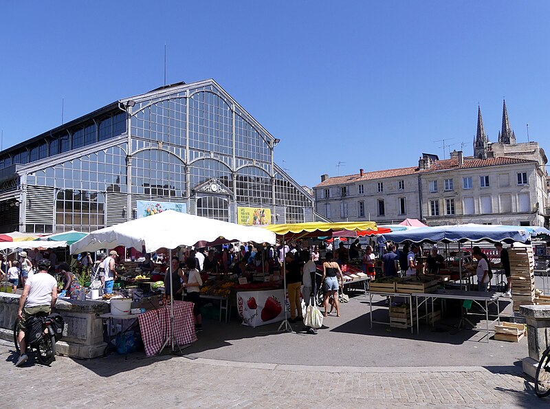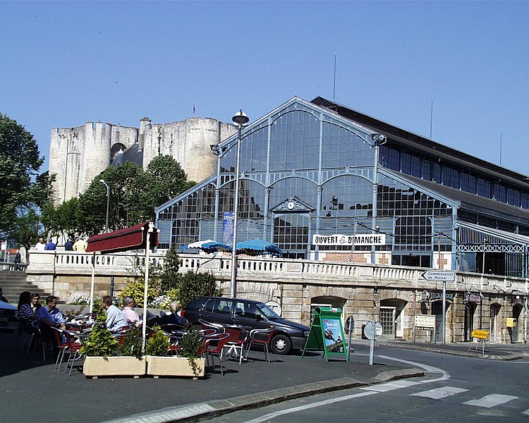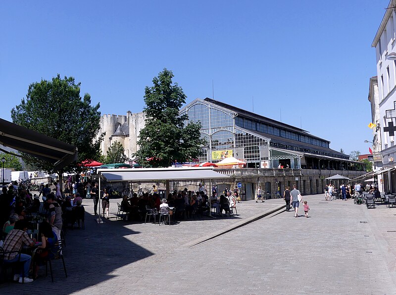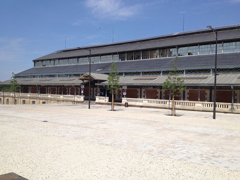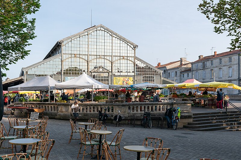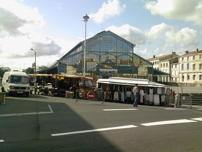 Le concours pour la construction de la halle, lancé en 1866, a été remporté par l'architecte Durand. Les travaux ont été exécutés entre 1868 et 1871; les abris extérieurs datent de 1928. L'édifice se divise en deux parties : l'une, voûtée, forme le soubassement ; l'autre est couverte d'une charpente métallique. La partie en fer et verre se présente comme un grand vaisseau rectangulaire sous une couverture à deux pans, coiffée d'un lanterneau et intérieurement divisée en trois nefs. Les portes d'accès sont ornées de colonnes et d'un fronton triangulaire. Une place s'est développée sur le pourtour.