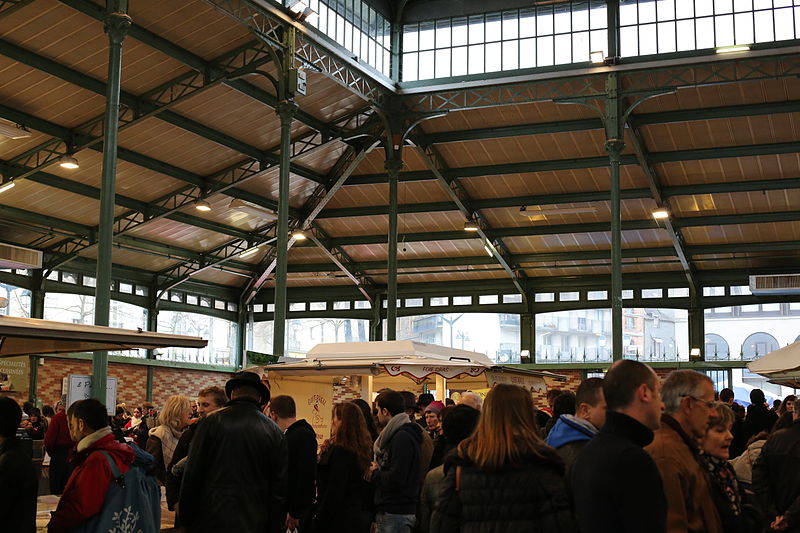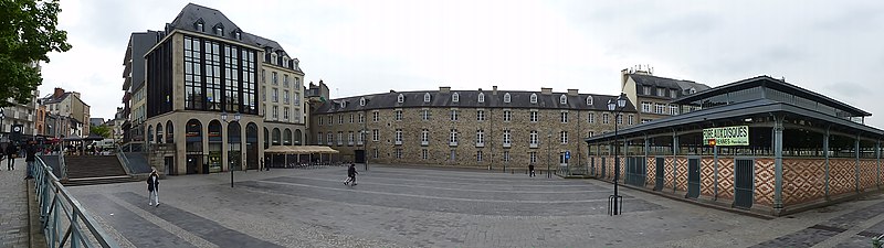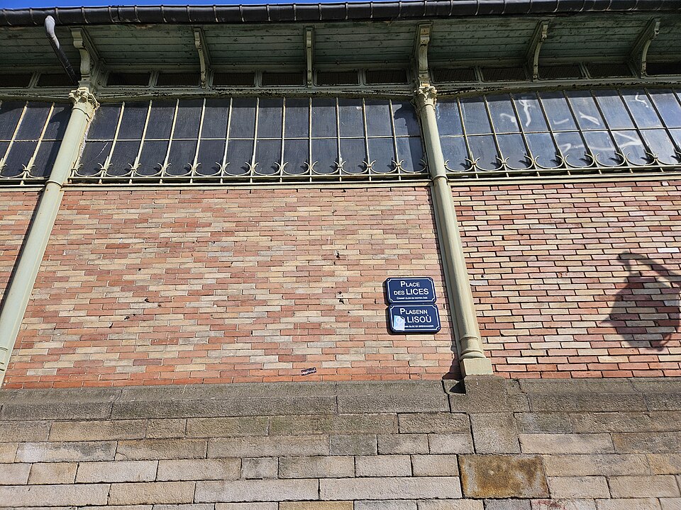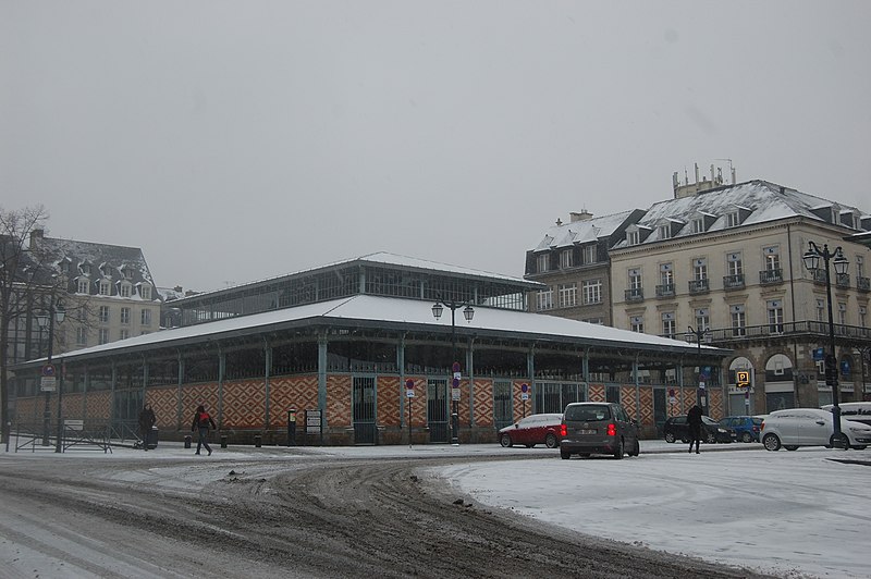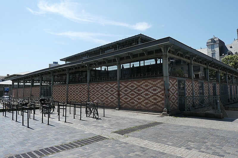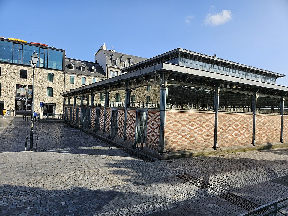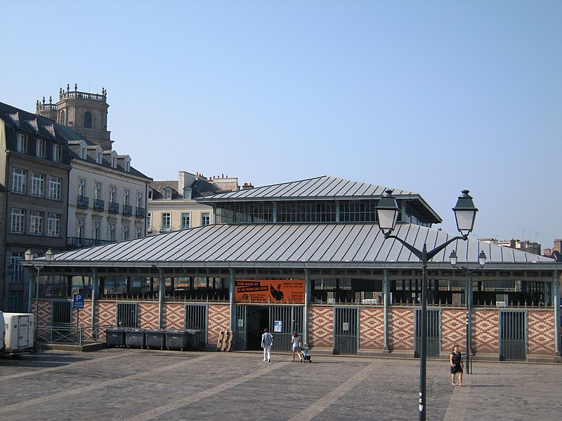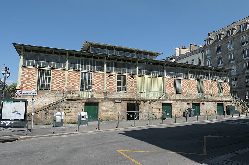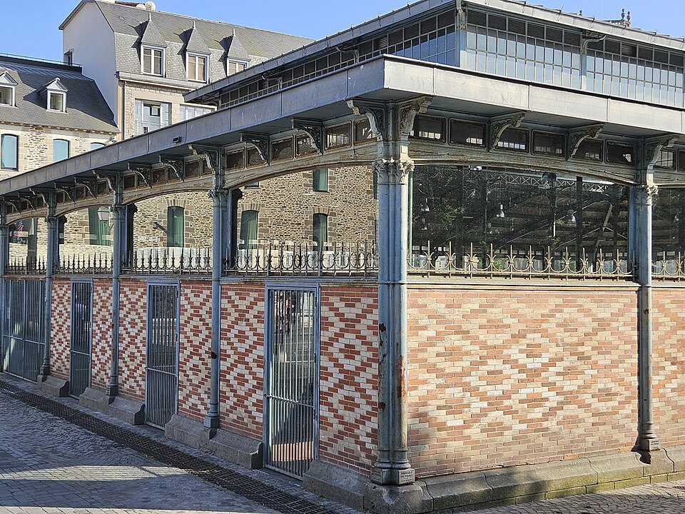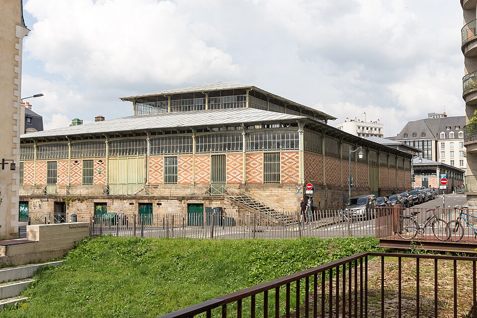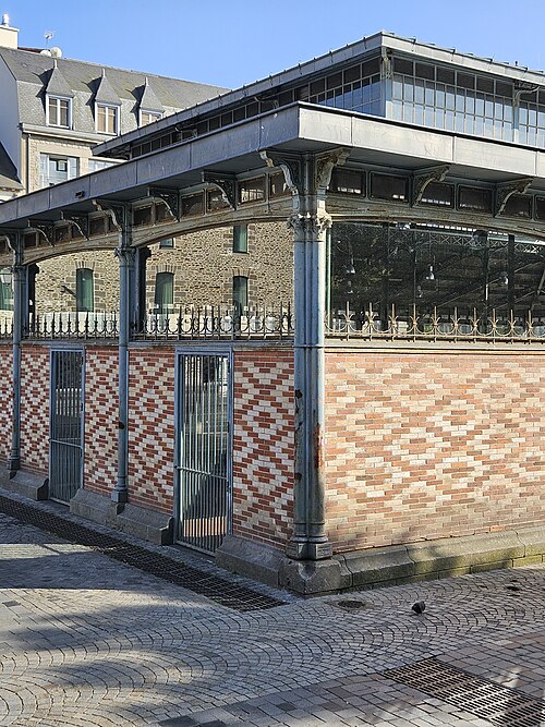 Les halles Martenot forment un ensemble de deux pavillons situés place des Lices, au bas de la place, dans le centre-nord-ouest de Rennes. Le site accueille un marché aux bestiaux dès 1483 ; une première halle en bois est édifiée au début du XVIIIe siècle puis détruite par l'incendie de 1720. À partir de 1828, la municipalité envisage la reconstruction et l'agrandissement d'une halle pour accompagner le développement du marché. L'architecte Jean-Baptiste Martenot présente un premier projet en 1861 puis, en 1867, propose la construction de deux pavillons d'égale dimension séparés par une place ; les travaux sont achevés entre 1870 et 1871. Chaque pavillon mesure 32 mètres de large sur 41 mètres de long, comprend neuf travées en profondeur et sept en largeur, pour une surface couverte d'environ 1 300 m² et une capacité d'environ 400 marchands. Les deux bâtiments sont séparés par une allée ouverte de 25 mètres qui s'ouvre sur la place de la Trinité. L'association de matériaux traditionnels et nouveaux — granit, brique peinte, fer et verre — et l'inspiration des halles de Victor Baltard confèrent à l'ensemble un caractère innovant pour son époque. Un troisième pavillon, réalisé par Le Ray (ou Leray selon les sources), est construit en 1907 au nord-est de la place et raccordé à la halle centrale en 1913. L'ensemble fonctionne comme marché de gros en semaine et accueille un important marché forain le samedi matin ; la halle sud est dédiée aux métiers de la boucherie avec des étals permanents. La halle nord sert également d'espace polyvalent pour des congrès, expositions, défilés de mode et réceptions, avec une capacité assise déclarée de 1 200 personnes. Dans les années 1970, un projet de parking souterrain menaçant les halles provoque une polémique ; le projet est finalement réalisé rue Kléber et, lors de sa campagne, Edmond Hervé s'engage à préserver les halles, promesse tenue après son élection en 1977. Lors de la rénovation de la place et des pavillons en 1988, le troisième pavillon du début du siècle est démoli au profit d'une dalle piétonne et un parking souterrain de 400 places est aménagé sous cette dalle, tandis que les pavillons principaux sont rénovés. Les deux pavillons sont classés au titre des monuments historiques en 1990. Aujourd'hui, outre l'important marché des Lices, la halle nord-est, dite « halle Martenot », accueille régulièrement des manifestations culturelles et événementielles, tandis que la halle sud-ouest est réservée au marché une matinée par semaine pour les étals de boucherie.