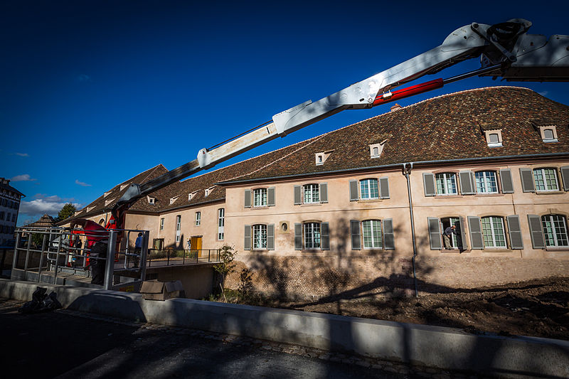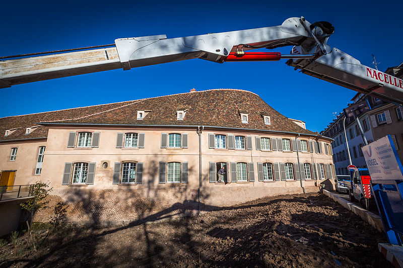 Le haras national de Strasbourg se situe au 1, rue Sainte-Élisabeth, à l'angle de la rue des Greniers et de la rue des Glacières, à Strasbourg (Bas-Rhin). Sa création résulte du déménagement en 1752 de l'école d'équitation municipale, transférée depuis la rue de l'Écarlate vers le terrain libéré par la disparition du couvent dominicain Sainte-Élisabeth. Les travaux furent confiés à Jacques Gallay, ancien appareilleur du palais des Rohan, qui avait par la suite conçu plusieurs hôtels particuliers à Strasbourg. En 1756, l'État imposa, à côté de cette école municipale, l'implantation d'un haras royal déplacé des faubourgs de la Robertsau ; la coexistence de ces deux autorités sur le même site suscita des difficultés. Le second établissement, comprenant la grande écurie et le portail sur la rue Sainte-Élisabeth, fut conçu par Clinchamp, directeur des Ponts et Chaussées d'Alsace. Les bâtiments de l'école, bâtis rapidement en brique enduite, contrastent avec les constructions du haras, noblement appareillées en grès ; l'ensemble forme un vaste U encadrant la carrière. Le plan-relief de 1836 atteste de la conservation intégrale de cette organisation, due à la pérennité de son affectation. Maintenus par Napoléon Ier pour fournir des chevaux à l'économie et à l'armée, les haras furent ensuite pérennisés sous le nom de haras national par la Troisième République. Par arrêté du 6 janvier 1922, la grande écurie et l'entrée principale sont classées au titre des monuments historiques ; par arrêté du 22 septembre 1987 sont classés l'escalier à balustres en bois du corps de logis principal ainsi que les façades et toitures de l'ensemble, à l'exclusion des façades de deux bâtiments en bordure de la rue des Glacières et de la petite aile en retour sud‑est de la grande cour. À la fin de 2013, les Haras ont été rénovés pour accueillir un hôtel, une brasserie et un biocluster.