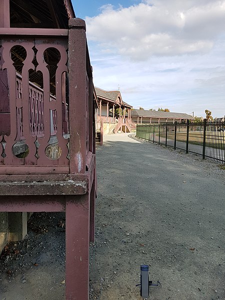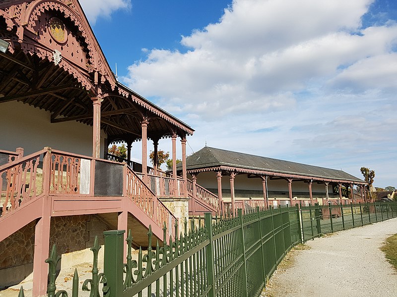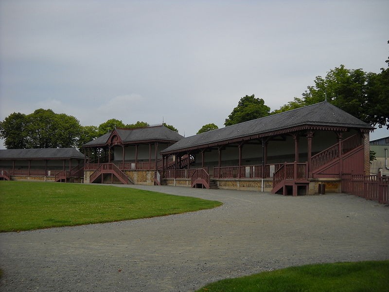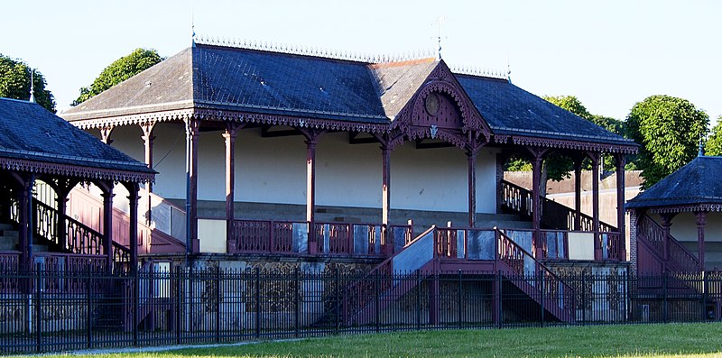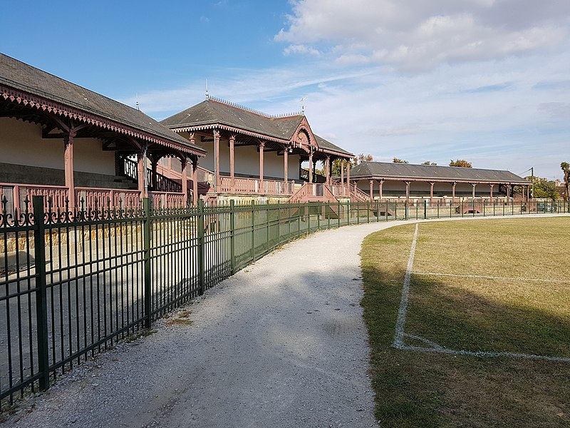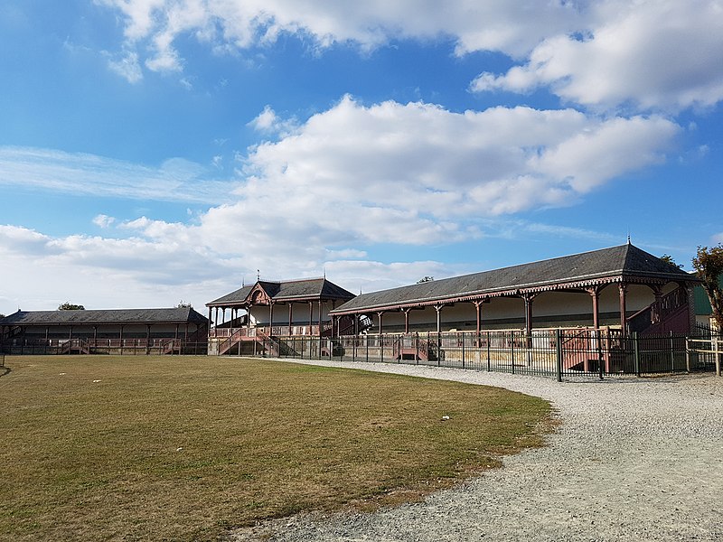 L'hippodrome de Mortagne-au-Perche, dans l'Orne, a été créé par décision impériale de Napoléon III en 1862. L'ensemble comprend trois tribunes en bois — une tribune d'honneur et deux tribunes latérales — élevées au début du XXe siècle. Ces tribunes conservent des détails décoratifs soignés, notamment des frises de bois sculpté et des épis de faîtage en plomb. Les élévations et les toitures des trois tribunes sont inscrites au titre des monuments historiques depuis le 23 décembre 1996. Dans la nuit du 15 au 16 juillet 2025, les garde-corps ont été vandalisés par l'arrachage d'une large partie des balustres et de la structure. La commune, propriétaire, a déposé plainte auprès de la gendarmerie.