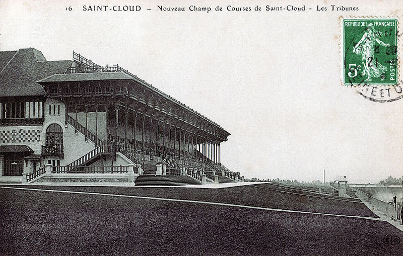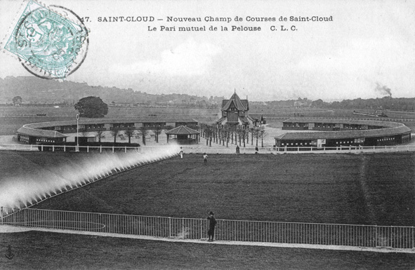 L'hippodrome de Saint-Cloud, dit aussi hippodrome du Val d'Or, se situe au nord-ouest de Saint-Cloud, dans les Hauts-de-Seine. Inauguré le 15 mars 1901, il est aujourd'hui un hippodrome de galop doté d'une piste en herbe de 2 300 m, corde à gauche, et s'étend sur 75 hectares. Cinq pavillons de gardien, le manège et l'ancien atelier de la maréchalerie sont partiellement inscrits à l'inventaire des monuments historiques depuis le 6 juin 1986, et l'ensemble du site est classé depuis le décret du 8 juillet 1998. Le site appartient à un domaine dont l'origine remonte au IXe siècle et qui était initialement un vaste champ de betteraves dépendant de l'abbaye de Saint-Denis. De 1855 à 1860, Napoléon III rassemble de nombreuses parcelles de la plaine de Fouilleuse pour constituer une ferme modèle destinée à son domaine privé, principalement sur Saint-Cloud et en partie sur Rueil-Malmaison. La ferme, essentiellement consacrée aux cultures céréalières, accueille en 1867 un concours de machinisme agricole puis est réunie au domaine de l'État le 6 septembre 1870. En janvier 1871 la ferme est incendiée pendant les combats; réparée, elle reçoit vers 1872 une colonie pénitentiaire de pupilles chargée de cultiver la terre et de former des ouvriers, puis accueille également de jeunes filles mineures avant que la colonie cesse son activité en 1895. L'État met le domaine en vente aux enchères le 1er février 1898 et Edmond Blanc l'acquiert pour une mise à prix de 620 000 F. Après avoir aménagé un jardin exotique, Edmond Blanc décide d'y construire un hippodrome; à partir de la fin du printemps 1898 un vaste chantier est engagé sous la direction de l'architecte Léon Berthault, qui donne aux constructions un style anglo-normand. Blanc étend la propriété à 83 hectares, démolit les bâtiments inutiles, engazonne les terres et lance de nombreuses constructions. Après trois ans de travaux la première tranche est achevée : une tribune monumentale, des pavillons de pesage, de pari-mutuel, de répartition et un commissariat de course sont édifiés, des jardins et parterres sont plantés, des voies d'accès sont aménagées, et des installations d'irrigation captent les sources environnantes et remontent l'eau de la Seine. Les aménagements techniques, modernes pour l'époque, comprennent des pistes larges de 50 mètres, des lignes droites raccordées à de grands virages, une ligne droite proche de 1 000 mètres, des départs au moyen de starting-gates et un télégraphe pour la transmission des résultats. La Société d'Encouragement pour l'amélioration du Cheval français de demi-sang prend la location de l'hippodrome, officiellement nommé « Champ de courses de Saint-Cloud » lors de l'inauguration. Souhaitant un lieu d'entraînement plus privé et proche de son haras de Jardy, Edmond Blanc lance en 1902 la construction d'un vaste centre d'entraînement privé : en réutilisant et en ajoutant des bâtiments il crée de nombreuses stalles et écuries, une sellerie, une maréchalerie, des magasins à fourrage et à grains, une salle de douches et une infirmerie pour chevaux, ainsi que des réfectoires, dortoirs et logements pour le personnel, disposés autour d'une cour fermée par sa résidence de style anglo-normand. La visite du roi d'Angleterre Édouard VII le 1er mai 1905 consacre l'établissement, et la gare du Val d'Or est aménagée pour faciliter l'accès depuis la porte Maillot. Pendant la Première Guerre mondiale les courses sont interrompues et l'hippodrome est réquisitionné comme hôpital militaire tenu par les Canadiens, commémorés par la rue du Camp-canadien qui mène au site. Les terrains servent aux épreuves de polo lors des Jeux olympiques d'été de 1924. Durant la Seconde Guerre mondiale une partie des pelouses est transformée en jardins potagers pour approvisionner la population locale. Les successeurs d'Edmond Blanc vendent l'hippodrome en 1952 à Marcel Boussac ; en 1954 l'architecte Eugène Lizero reconstruit la tribune, le paddock, les guichets, les stalles et les boxes, tandis que le centre d'entraînement et la maison de Blanc sont préservés et que les bâtiments néo-normands sont rasés. Le nouvel hippodrome, plus fonctionnel, est inauguré en février 1955 ; il change de propriétaire en 1974 et appartient aujourd'hui à la société France Galop. Le centre d'entraînement et la maison d'Edmond Blanc sont restaurés puis transformés en 1981 en club sportif privé, le Paris Country Club, et un terrain d'entraînement de golf occupe désormais le centre des pistes. L'hippodrome accueille aujourd'hui trente-deux réunions annuelles ; ses courses principales sont le Grand Prix de Saint-Cloud, le Critérium de Saint-Cloud et le prix Edmond-Blanc disputé en mars. En octobre 2014 un document de travail proposait la construction de 6 000 logements sociaux sur le site dans le cadre d'une opération d'intérêt national, mais ce projet, qui posait la question de la compatibilité avec le classement et le plan local d'urbanisme, a été définitivement écarté en juin 2015 après une pétition ayant réuni plus de 20 000 signatures.