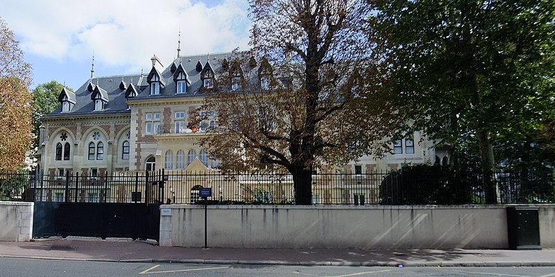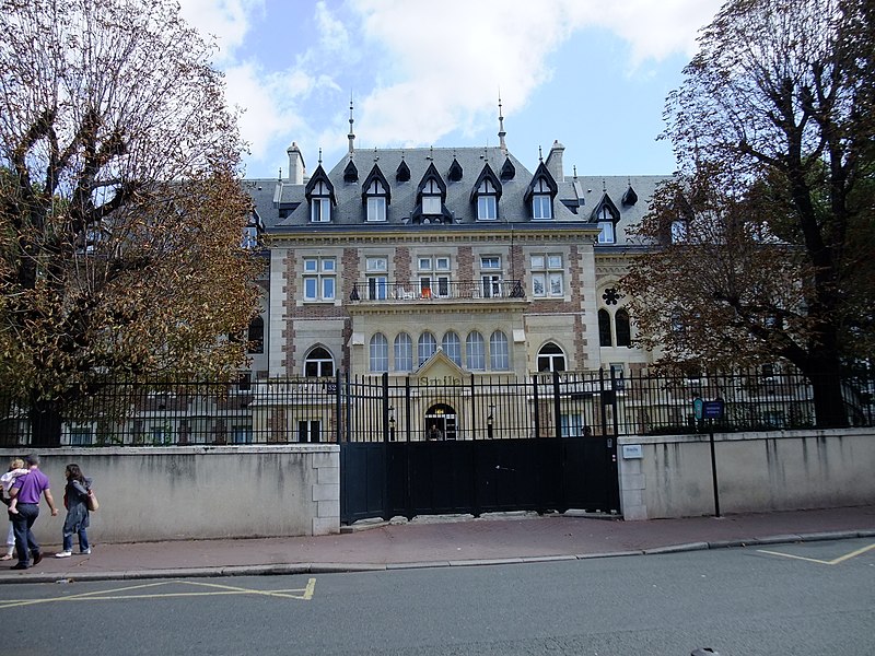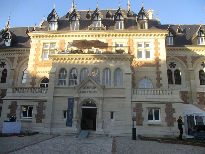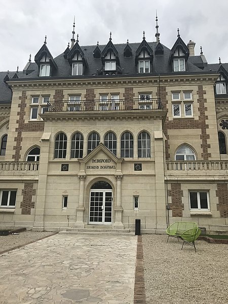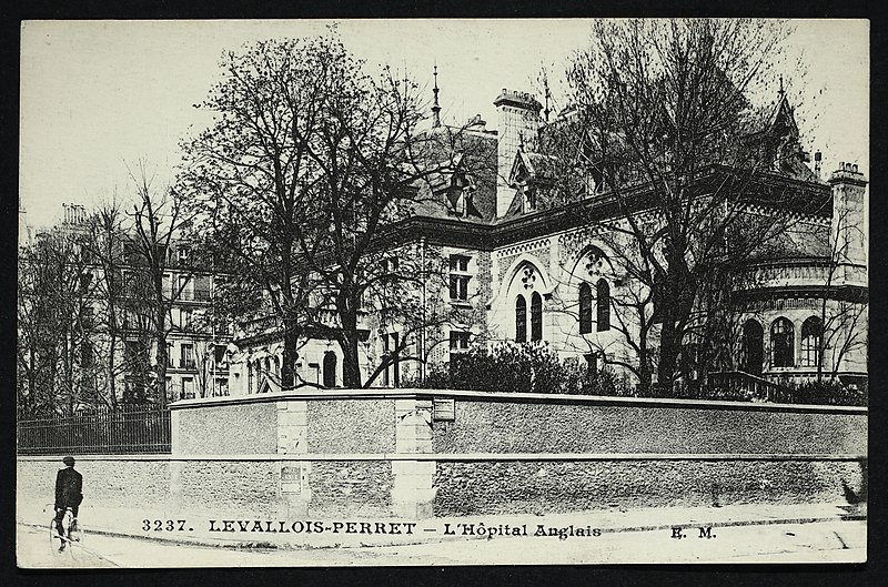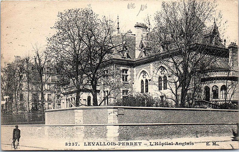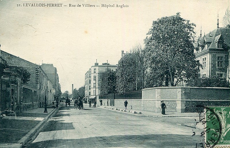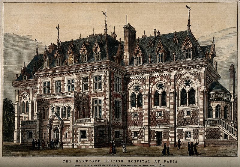 L'Hôpital anglais, ou Hertford British Hospital Corporation, a vu son bâtiment historique inauguré en 1879; il a été construit par l'architecte Ernest Sanson et financé par sir Richard Wallace, qui lui donna le nom de son père. Conçu pour soigner les sujets britanniques résidant en France, l'édifice de style néo-gothique, en brique et pierre de taille avec un toit d'ardoise ponctué de lucarnes, a été distingué par une grande médaille de la Société centrale des architectes. Sir Richard Wallace avait soutenu des initiatives d'aide pendant la guerre de 1870 avant de décider d'édifier cet hôpital. Le bâtiment a été agrandi en 1957 par des constructions occupant l'ancien jardin et, à la place des jardins arrière, des bâtiments modernes ont été élevés en 1982 pour accueillir le pôle « Femme-Mère-Enfant ». Rénovés à partir de 2006, les locaux hospitaliers ont fait l'objet de travaux importants en 2009; depuis 2010, le bâtiment historique du 48, rue de Villiers est loué à des sociétés commerciales, notamment Smile puis Zalthabar à partir de 2014.