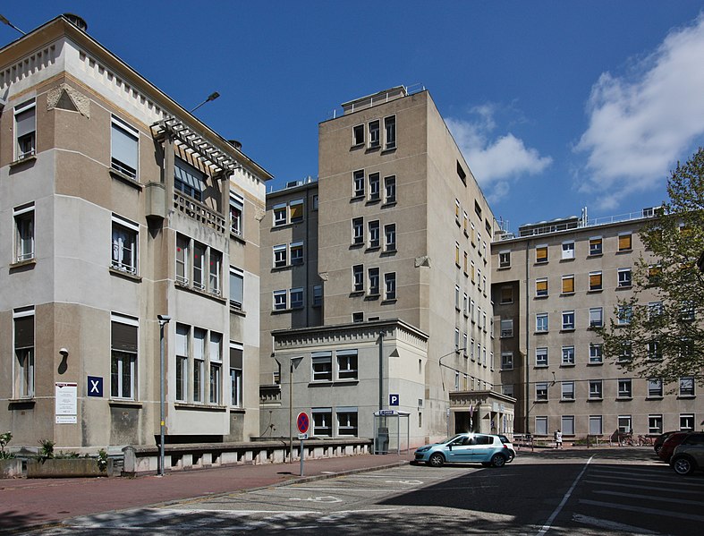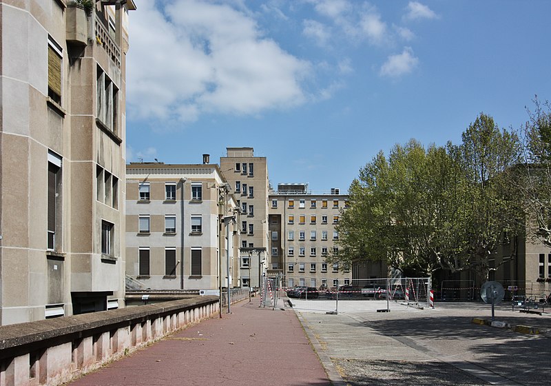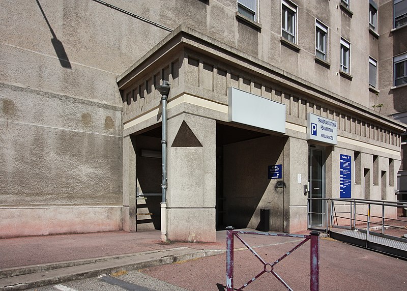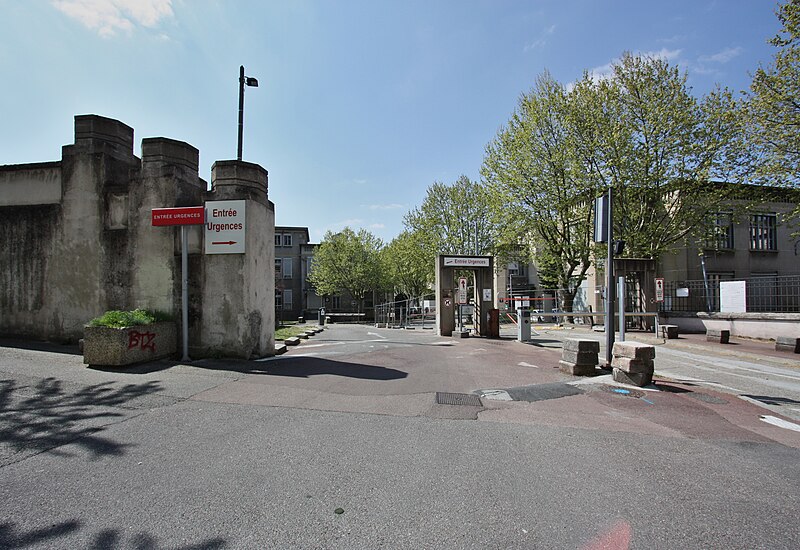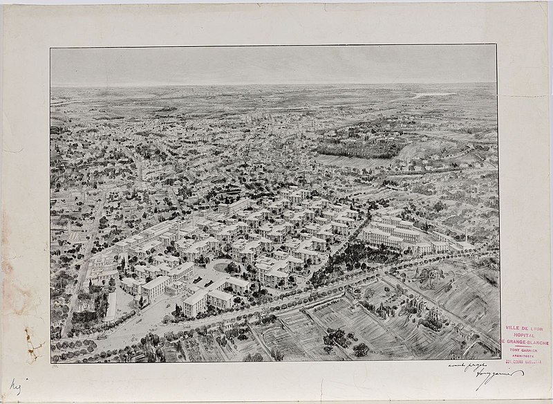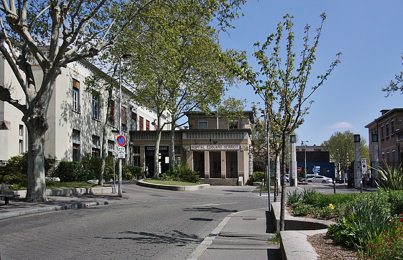 L'hôpital Édouard-Herriot, anciennement appelé Grange-Blanche, est un des pôles du centre hospitalier universitaire de Lyon et le plus grand hôpital de la région Auvergne-Rhône-Alpes. À l'initiative du maire Édouard Herriot, le projet est confié en 1909 à l'architecte Tony Garnier, qui transpose dans un établissement hospitalier les principes de sa « cité industrielle ». Les avant‑projets datent de 1910‑1911 et la réalisation s'est étalée sur plusieurs années, avec des interruptions liées notamment à la guerre. Le site, acquis par la ville, est organisé selon un plan pavillonnaire et végétalisé, qualifié de « cité‑jardin » pour les malades, composé d'une trentaine de pavillons reliés par un vaste réseau de galeries souterraines. L'ensemble initial comprenait des pavillons d'hospitalisation et des pavillons de service, des installations techniques et une centrale électrique dont les hautes cheminées, construites selon le système Monnoyer, ont fait l'objet d'un permis de démolir en 1996 en raison de leur état. La chapelle, non prévue à l'origine, est l'œuvre de l'architecte Louis Thomas et présente un Christ sculpté par Georges Salendre ; elle fait l'objet d'une protection au titre des monuments historiques. La construction, commencée avant la guerre, a été ralentie par le conflit et l'emploi de prisonniers de guerre, et le coût final a largement dépassé les estimations initiales, mettant en difficulté les finances municipales. Inauguré en 1933, l'hôpital comportait environ 32 pavillons, quelque 1 544 lits et de nombreux services transférés d'autres établissements lyonnais ; l'ouverture d'un centre anticancéreux porta ensuite la capacité d'accueil. Le plan originel répartissait les fonctions en trois zones — services généraux au nord, pavillons de soins en position centrale et un secteur pour les maladies contagieuses au sud — et prévoyait des pavillons en « U » ouverts au sud pour un meilleur apport de lumière. Les bâtiments, généralement sur deux niveaux, combinaient grands pavillons de médecine et pavillons de chirurgie avec un rez‑de‑chaussée « septique » et un étage « aseptique » ; à l'origine, les chambres étaient peu nombreuses et de grandes salles communes prédominaient, ce qui rendit ensuite difficile la transformation vers des chambres individuelles. Un réseau souterrain de 2,5 kilomètres permettait l'acheminement interne des repas, du linge et du matériel, et un tunnel reliait l'hôpital aux locaux universitaires et à l'Institut médico‑légal. Parmi les premiers chefs de service figuraient Eugène Villard (gynécologie), Gabriel Nove‑Josserand (chirurgie infantile), Frédéric Collet (ORL) et Léon Bérard (centre anticancéreux). Après la guerre, la croissance des besoins et la multiplication des spécialités entraînèrent la division des pavillons et une hausse importante de la capacité, qui atteignit plusieurs milliers de lits au début des années 1950. La réforme Debré de 1963 conforta les liens avec la faculté de médecine et favorisa l'intégration de laboratoires hospitaliers, puis des rénovations successives modernisèrent les équipements et supprimèrent notamment les grandes salles communes dans les années 1970. Les décennies suivantes virent l'introduction de nouvelles techniques et matériels — lithotripteur, scanners, lasers, spectromètre de résonance magnétique — ainsi que des avancées chirurgicales notables, dont les premières allogreffes de la main réalisées par le professeur Jean‑Michel Dubernard. Le pavillon maternité S a fermé en 2008 et, au début des années 2010, des projets de restructuration et de modernisation de l'établissement ont été lancés, avec la construction programmée de nouveaux bâtiments pour regrouper des services éclatés. Le Centre des grands brûlés, ouvert en 1957 sous la direction du professeur Jean Creyssel, a été l'un des premiers en France ; il a évolué en plusieurs phases d'amélioration technique et architecturale et a traité de nombreux épisodes collectifs comme des victimes d'accidents industriels. En 2016, l'hôpital regroupait une vaste gamme de services médicaux et spécialisés — urgences (dont dentaires et psychiatriques), médecine hyperbare, oncologie, transplantation, multiples disciplines chirurgicales, radiologie, néphrologie, hématologie, dermatologie, rhumatologie, ophtalmologie, ORL, orthopédie, médecine gériatrique, médecine interne, médecine du sport, médecine légale, unités de génétique et de soins palliatifs, ainsi que des consultations et structures de suivi et de prévention — et abrite des unités de recherche associées au CNRS et à l'INSERM. Sur le plan patrimonial, outre la chapelle inscrite en 1967, plusieurs façades, toitures, pavillons, éléments de clôture, lampadaires et cheminées ont été inscrits en 1989, et la trame des voies, le réseau souterrain et certains éléments d'architecture font l'objet d'une inscription depuis 2006. Le site reste desservi par la station Grange‑Blanche.