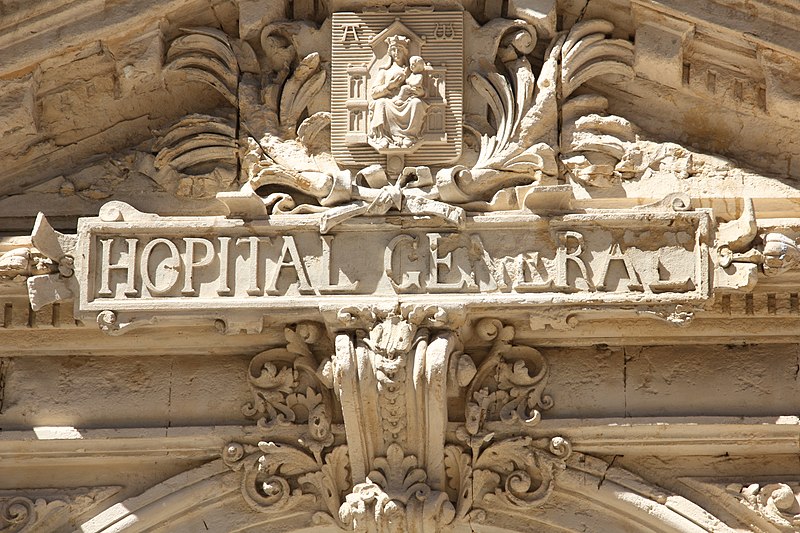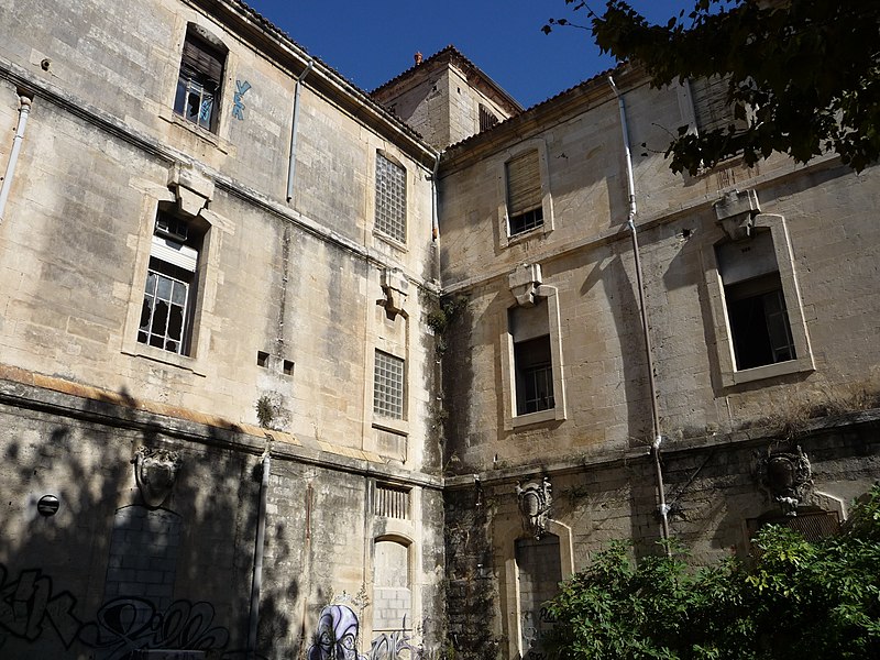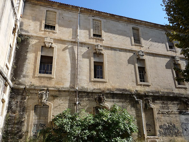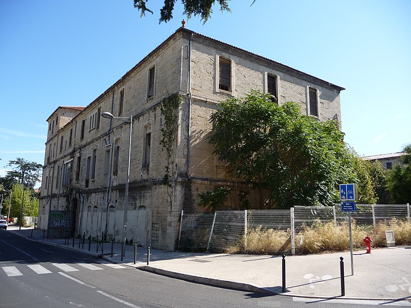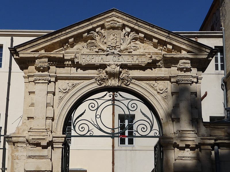 Fondé en 1678 par lettres patentes de Louis XIV sur l'emplacement du couvent des Carmes, l'hôpital général suit des devis et plans dressés en 1679 par Antoine Armand et Jacques Cubissolle, maîtres maçons et architectes montpelliérains, et se présente comme un hôpital pavillonnaire à plan en grille avec deux cours. Le quartier des femmes est édifié dans la première moitié du XVIIIe siècle. Au milieu du XVIIIe siècle (1746-1750 selon les sources), Jean Giral ajoute l'aile dite des Incurables; en 1751 il établit le plan de la nef et procède à l'agrandissement de l'église. Le chœur, coiffé d'une coupole, est achevé ou reconstruit par Jacques Nogaret (1751-1753 selon les documents). Le décor sculpté prévu pour la façade par Pierre Dumas n'a pas été exécuté. Entre 1821 et 1824, sur les indications du médecin Hyppolite Rech, l'architecte montpelliérain Fovis fait édifier à l'ouest un asile d'aliénés de style néo‑classique; cet édifice est démoli au début des années 1930 (1930-1932 selon les sources), à l'exception d'une aile nord qui servira de pharmacie jusqu'à la désaffectation de l'hôpital. La création de la place Albert 1er en 1892 entraîne la suppression de l'avant-cour et la construction, par Henri Debens, de nouveaux pavillons d'entrée et d'un pavillon d'ophtalmologie. Entre 1932 et 1939, les cliniques Saint‑Charles sont élevées sous la forme d'un hôpital‑bloc en ciment armé et pierre par les architectes parisiens Paul Pelletier et Arthur Teisseire, avec balcons solaria. Le programme ornemental comprend de grandes verrières en grisaille réalisées par le maître‑verrier Emile Brière (1937‑1939) et des panneaux sculptés en haut‑relief du corps central par Joachim Costa (1937‑1946). En 1993 la clinique d'ophtalmologie est démolie pour le passage de la voie des autobus. L'église est classée monument historique en 1947; le grand escalier et le vestibule sont inscrits en 1963. L'ensemble formé par l'hôpital général, les cliniques Saint‑Charles et leur jardin est inscrit au titre des monuments historiques en 1997; la commission supérieure des monuments historiques a émis un avis favorable au classement de cet ensemble en avril 1998.