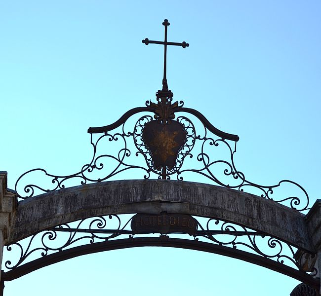 L'Hôtel-Dieu de L'Isle-sur-la-Sorgue, ancien hôpital-hospice, trouve son origine dans le regroupement de cinq petites institutions créé en 1387. À partir des années 1640, il se structure progressivement avec l'instauration de postes tels que médecin et économe. En 1686, la gestion est confiée aux sœurs de Saint-Joseph d'Avignon, qui s'installent après un changement de locaux dans une maison du quartier de Villevieille, à l'ouest de la ville. Les bâtiments deviennent rapidement insuffisants et il faut attendre des legs au début du XVIIIe siècle pour acquérir des terrains en vue d'une reconstruction. Les recteurs confient alors le projet à l'architecte Jean-Baptiste Franque, réputé dans la région ; le nouvel hôpital est inauguré en 1755 et les travaux, notamment la décoration de la chapelle, se poursuivent jusqu'en 1782. L'ensemble est classé au titre des monuments historiques le 25 avril 1969. Aujourd'hui, le Centre Hospitalier de L'Isle-sur-la-Sorgue reste un acteur sanitaire local : il offre des services de médecine et de soins palliatifs, de soins de suite et de réadaptation, un service de soins infirmiers à domicile (SSIAD), un accueil de jour pour les personnes atteintes de la maladie d'Alzheimer, une plateforme d'accompagnement des aidants et un établissement d'hébergement pour personnes âgées dépendantes (EHPAD), et emploie environ 200 agents. Le plan du bâtiment forme un H autour de quatre ailes ; l'accès à la cour se fait par un portail en fer forgé daté de 1762, surmonté des armoiries du prévôt de Sade, bienfaiteur de l'établissement. Autour du bâtiment s'étendait un jardin à la fois d'agrément, orné de fontaines de Jean-Ange Brun, et de subsistance. Au rez-de-chaussée se trouvent un hall desservant un escalier monumental à rampe en fer forgé, une chapelle et une pharmacie ; cette pharmacie, restée intacte au XXe siècle et gérée par les sœurs, conserve de nombreux pots en faïence de Moustiers du XVIIIe siècle ainsi qu'un grand mortier du XVIe siècle. L'aile sud abritait la congrégation ; elle accueille aujourd'hui la Direction du Patrimoine de L'Isle-sur-la-Sorgue.