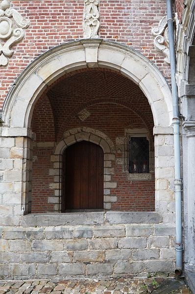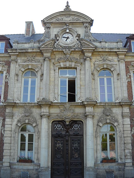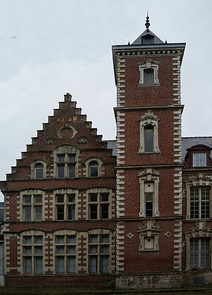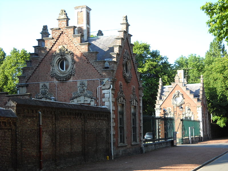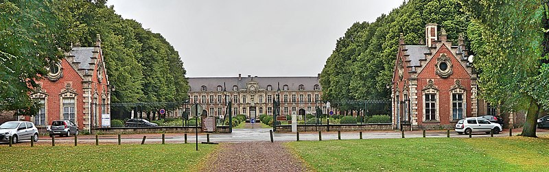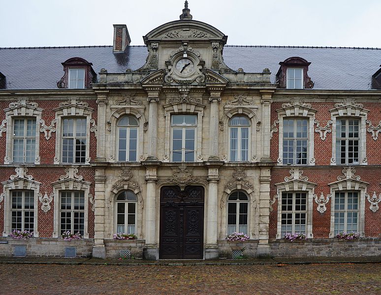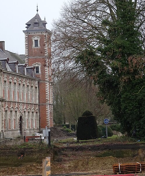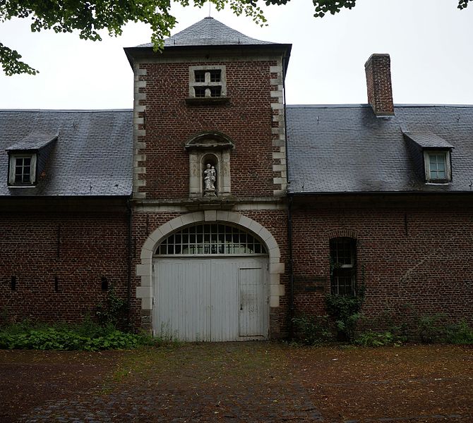 L'entrée est précédée d'une drève bordée de tilleuls longue de 375 mètres, dessinée par l'architecte Achille Dewarlez en 1850, qui mène à un jardin à la française. Le jardin est accessible par une grille encadrée de deux pavillons conçus par Charles Marteau en 1858 ; son centre est occupé par une statue de Marguerite de Flandre sculptée par Gustave Crauk en 1880. À droite du jardin, la ferme conserve une bergerie et des ateliers du XVIIe siècle réunis par un porche surmonté d'un pigeonnier du XVIIIe siècle.