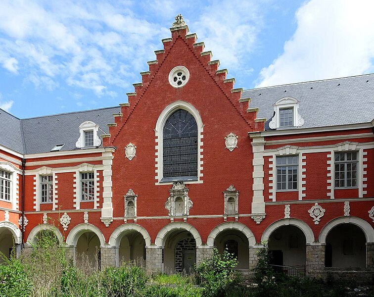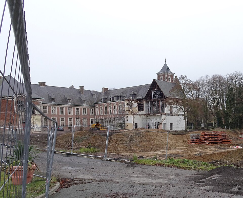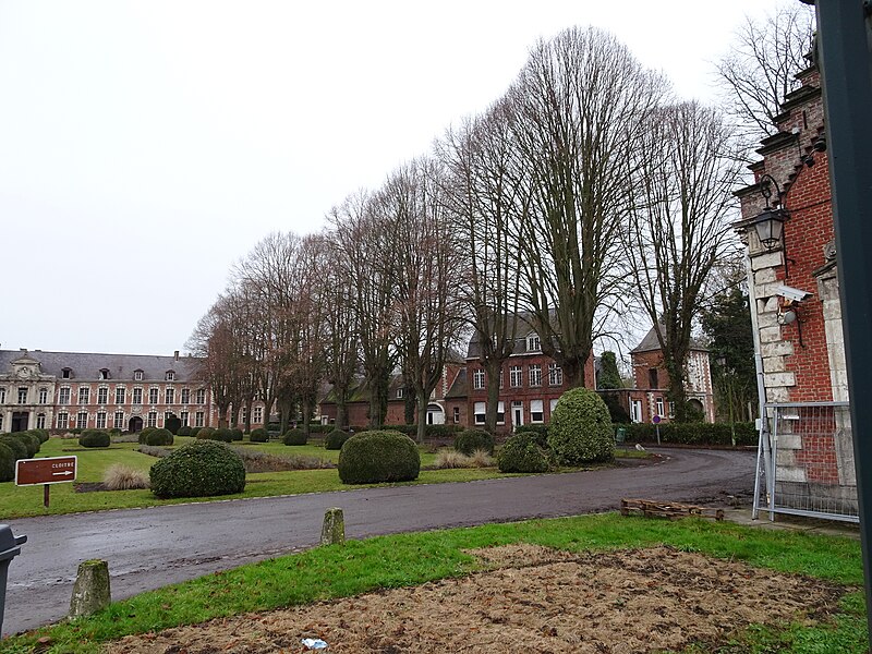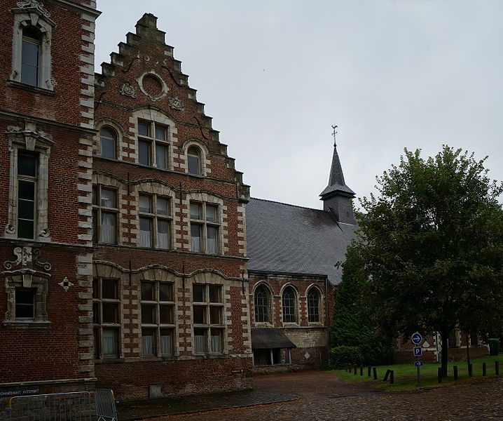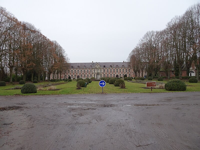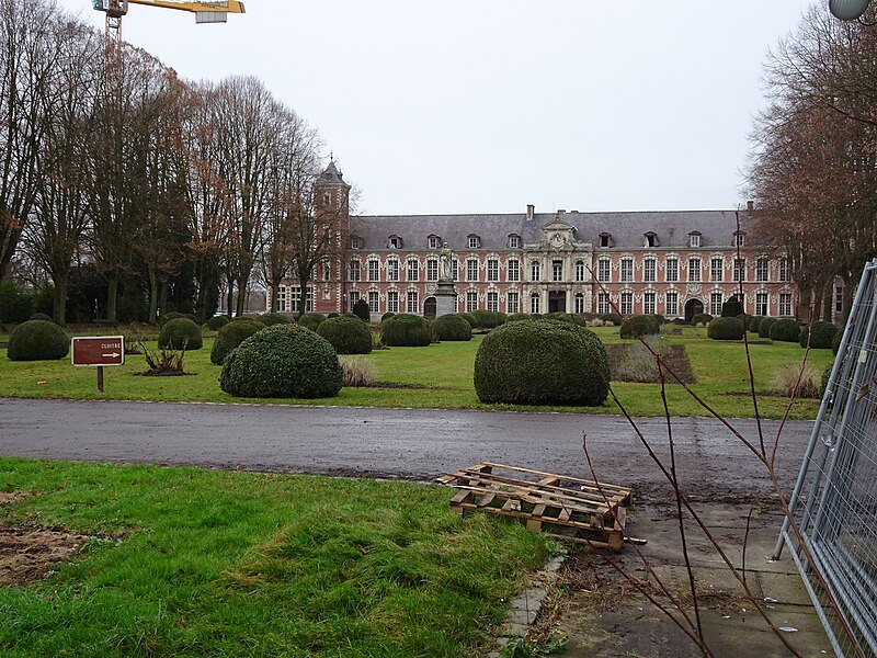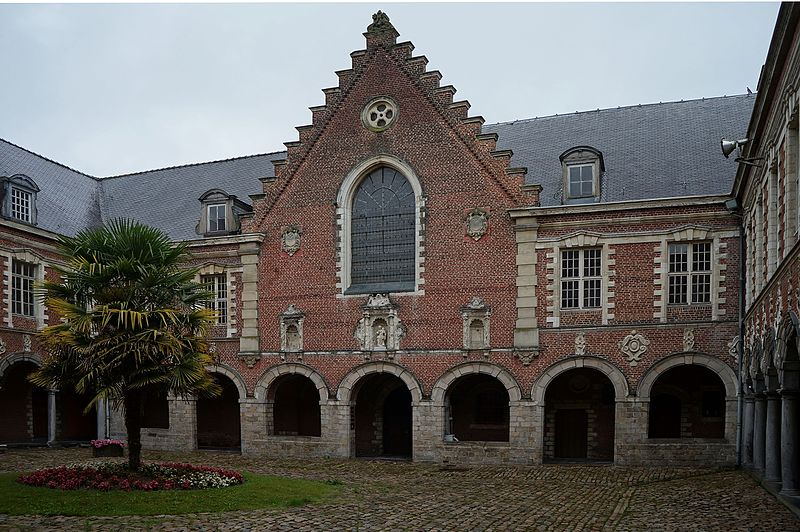 Les bâtiments conservés, édifiés entre le XIVe et le début du XXe siècle, forment une unité architecturale remarquable de style Renaissance hispano-flamande. L'aile nord réunit les éléments les plus anciens : le chœur reconstruit entre 1340 et 1360, la chapelle construite en 1533, la salle des malades du XVe siècle, reconstruite et agrandie au XVIIe siècle, et la sacristie ajoutée au XVIIIe siècle. On accède à ces espaces par une cour carrée aménagée au XVIIe siècle dont les côtés furent successivement réalisés en 1635 (nord), 1667 (est), 1694 (ouest) et 1701 (sud). Les ailes est et ouest regroupent des bâtiments élevés du XVIe au XVIIe siècle, antérieurs à l'aménagement de la cour, tandis que l'aile sud a été construite entre 1701 et le début du XXe siècle. La façade témoigne de cette évolution : l'aile droite date de 1635, le pavillon central, dit Pavillon de l'horloge, a été édifié en 1856, et l'aile gauche a été construite entre 1855 et 1860, son extrémité datant de 1910.