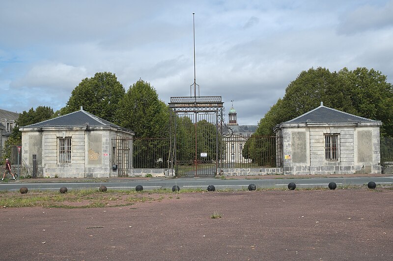 Façades et toitures de tous les bâtiments anciens, y compris l'entrée et les pavillons attenants ; vestibule d'entrée et ses escaliers ; chapelle centrale en rotonde et galerie la surmontant (cad. E 1121, 1122, 1130 à 1135, 1137, 1138, 1142 à 1144, 1148, 1149) : inscription par arrêté du 14 septembre 1965 ; Le pavillon de l’école de médecine navale, en totalité, situé à Rochefort, sur la parcelle n°558, figurant au cadastre section AY, tel que coloré en rouge sur le plan annexé à l'arrêté : classement par arrêté du 1er avril 2022