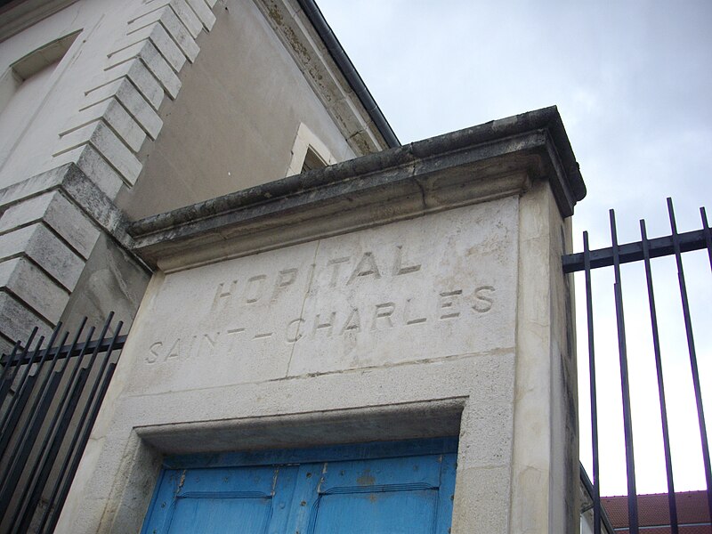 L'hôpital Saint-Charles se situe à Commercy (Meuse, Grand Est), au 1 rue Henri-Garnier. La première mention d'une maison-Dieu dans la ville date de 1403 ; l'édifice actuel remplace cette institution grâce aux libéralités du prince de Vaudémont, de la princesse de Lillebonne et d'Élisabeth-Charlotte d'Orléans. La construction s'est déroulée en deux campagnes : 1716-1720 pour le bâtiment principal et la chapelle, avec l'entrepreneur Antoine Carbonart vraisemblablement sur des plans du bénédictin Dom Léopold Durand, puis 1739-1740 pour l'achèvement de l'église sous la direction de l'architecte Claude-Nicolas Letixerant. La porte de la chapelle porte la date de 1739. En 1816, un bâtiment à gauche de la chapelle fut édifié pour servir d'école et de pensionnat par l'entrepreneur Claude Roussel l'Aîné d'après les plans de l'architecte Pierre Charon. Du milieu du XIXe siècle à nos jours, d'importantes extensions ont été réalisées sans altérer les constructions du XVIIIe siècle. Les bâtiments du XVIIIe siècle, inscrits au titre des monuments historiques par arrêté du 28 septembre 1998, présentent un plan en T composé de deux corps. La chapelle, incorporée dans la moitié ouest du corps principal, offre un vaisseau unique flanqué de galeries à deux niveaux d'arcades. Le corps perpendiculaire accueille les communs, la pharmacie et les salles communes. Parmi les éléments d'intérêt figurent la chapelle elle-même, une statue de la Vierge, une Vierge de Lourdes et un tableau représentant Anne-Élisabeth de Lorraine. Le canon d'autel est en papier imprimé décoré de scènes religieuses et encadré d'un bois sculpté et doré. La cloche en bronze, montée sur un joug en bois, possède un battant et des ferrures en fer forgé ainsi qu'une barre d'appel en bois ; elle sonne la note do dièse.