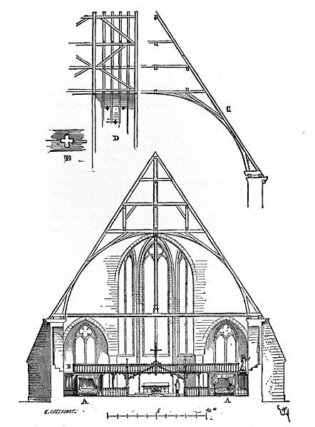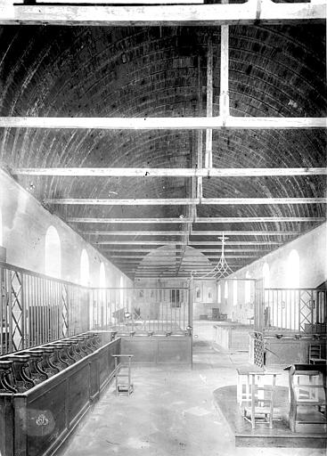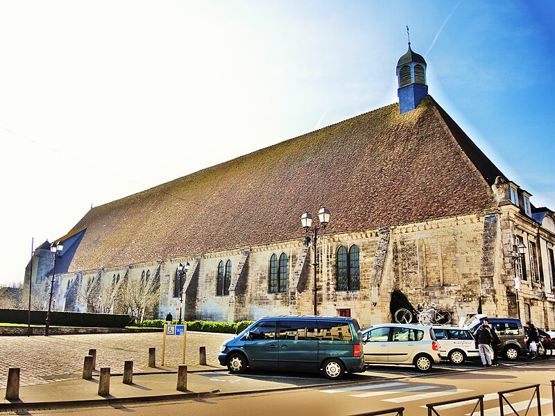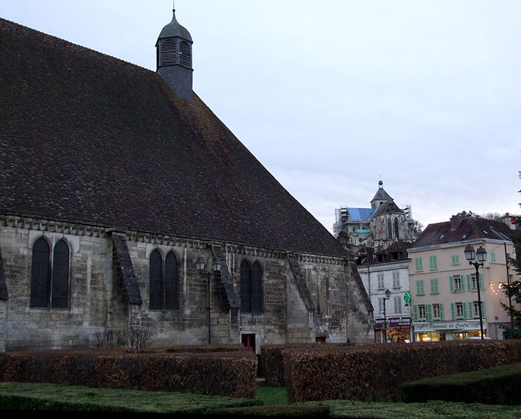 L'ensemble d'origine comprend la Grande Salle des Pauvres, accessible par un porche occidental et destinée aux soins des indigents ; elle est terminée par un chœur à abside polygonale flanqué de deux chapelles et comportait quatre autels dédiés à la Vierge Marie, à saint Jean-Baptiste, à sainte Marie-Madeleine et à sainte Élisabeth de Thuringe. Au dos du chœur et de la chapelle sud se tient la sacristie, réaménagée en 1454 pour accueillir la Mise au Tombeau ; au nord de la Grande Salle s'étendait le cimetière, entouré de dépendances et de trois corps de logis démolis en 1838, dont l'un, appelé « Château », servait de résidence à la fondatrice. La Grande Salle, de style gothique, mesure 96 m de long avec l'abside (88,5 m sans), 21,5 m de large et 20 m de haut ; son vaisseau est soutenu par des contreforts, percé de fenêtres jumelées en arc brisé inscrites dans des embrasures en arc surbaissé et couvert d'un berceau lambrissé en chêne laissant voir entraits et poinçons de la charpente, tandis que le chœur, les chapelles et l'ancienne sacristie sont voûtés d'ogives. Une tour d'escalier carrée permet l'accès à une pièce voûtée au-dessus de la chapelle gauche et aux combles ; la façade de la salle Courtanvaux, issue de l'extension du XVIIIe siècle, présente un avant-corps surmonté d'un fronton cintré et un grand palier formant tribune domine l'ensemble. Le toit à longs pans et croupe polygonale est couvert de tuiles plates et un clocheton hexagonal à essentage d'ardoise le surmonte à l'ouest.